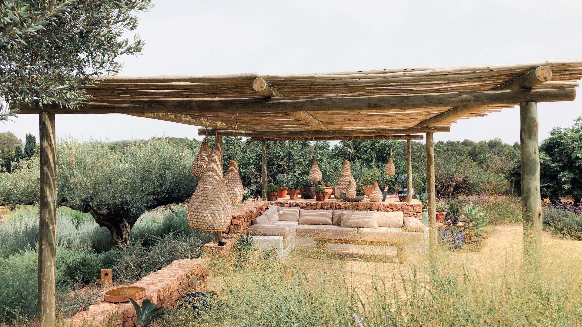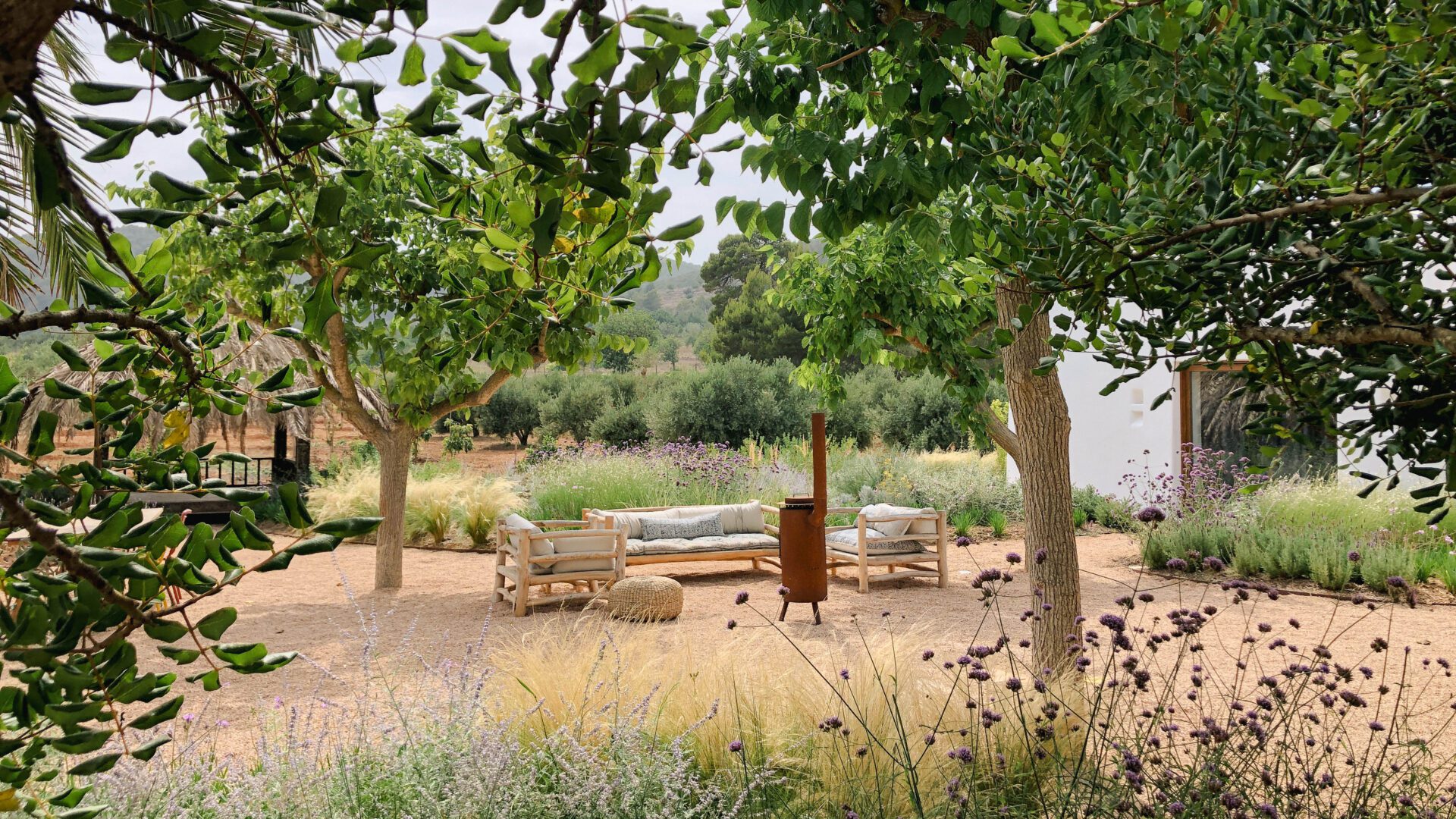 The landscape design project at Can Tanqueta is set within a terrain of former agricultural fields, characteristic of the rural heart of the island of Ibiza. Our work focused on creating a garden in the immediate surroundings of the house, blending it seamlessly into the existing landscape through a series of peripheral plantings, along with an agricultural composition of citrus trees and olive groves.