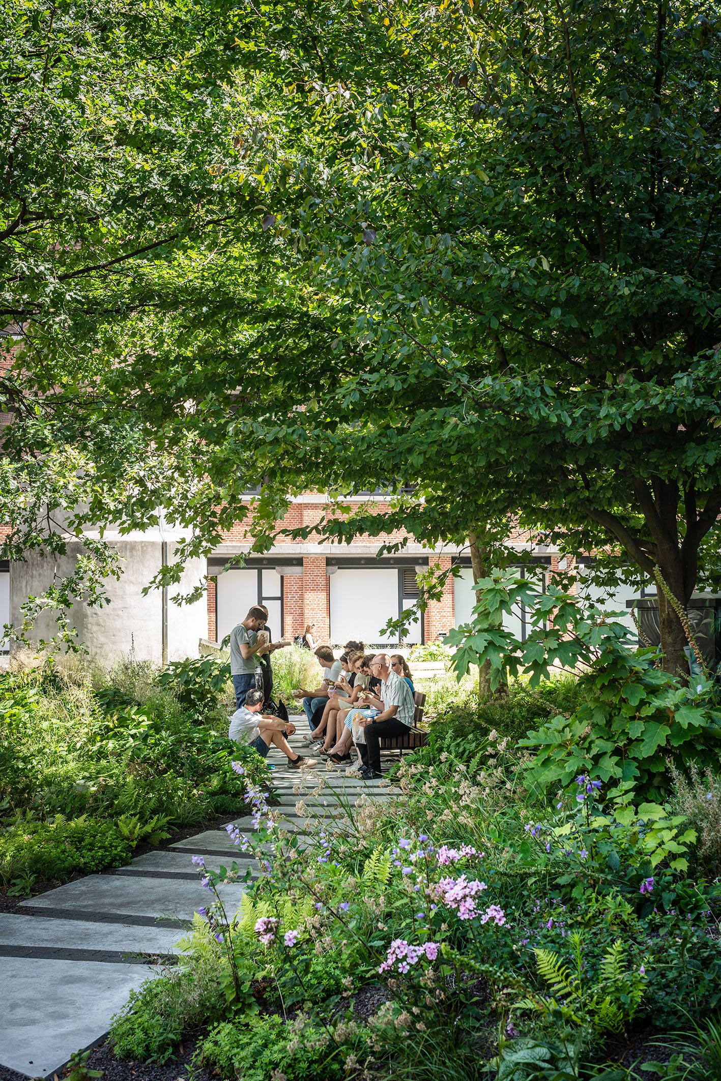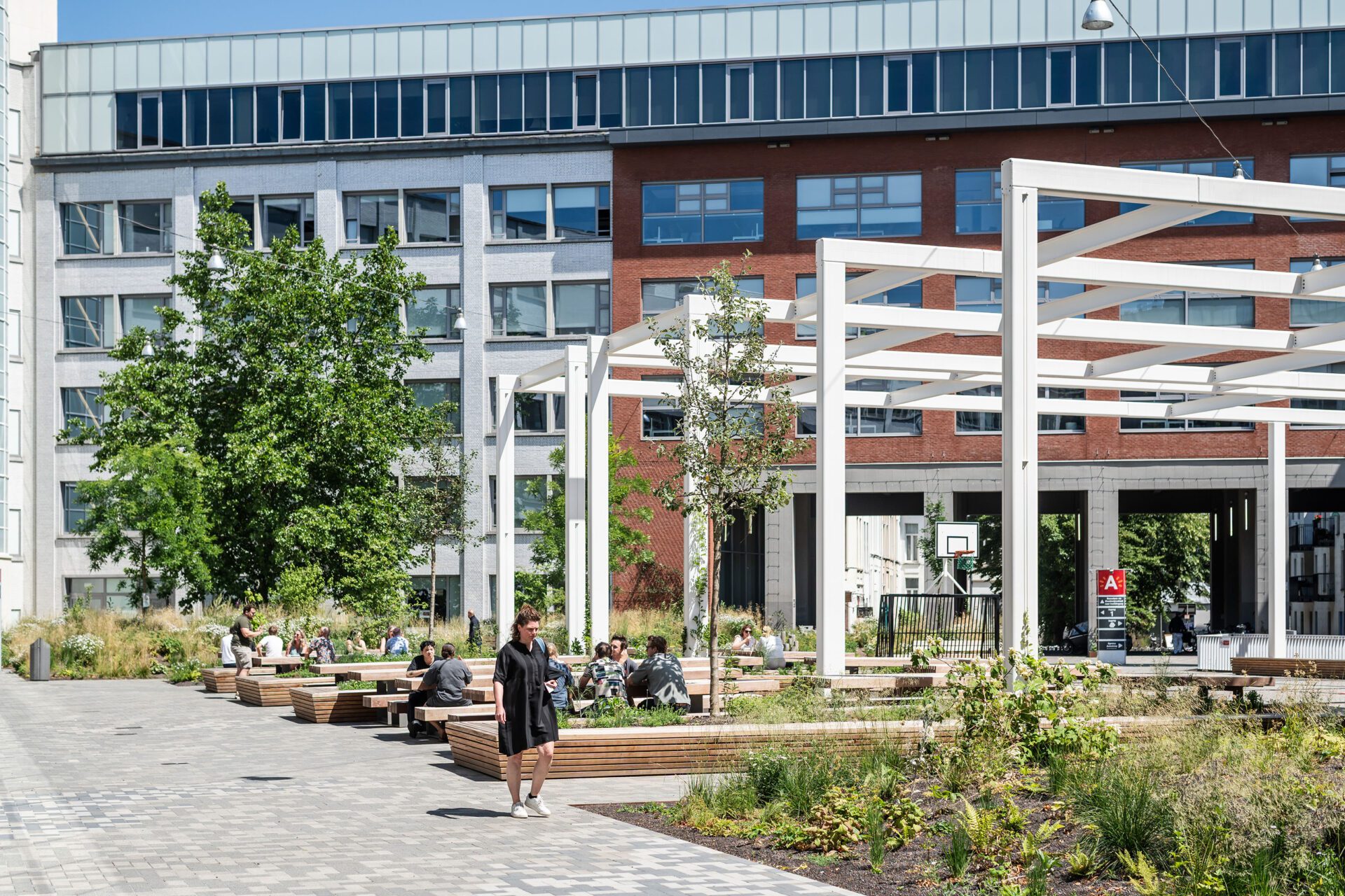 The city of Antwerp organised an ambitious design competition in 2021 to make the site of the city building ‘Den Bell’ greener. Both the courtyard on top of the underground car park and the roofs are part of the design.
