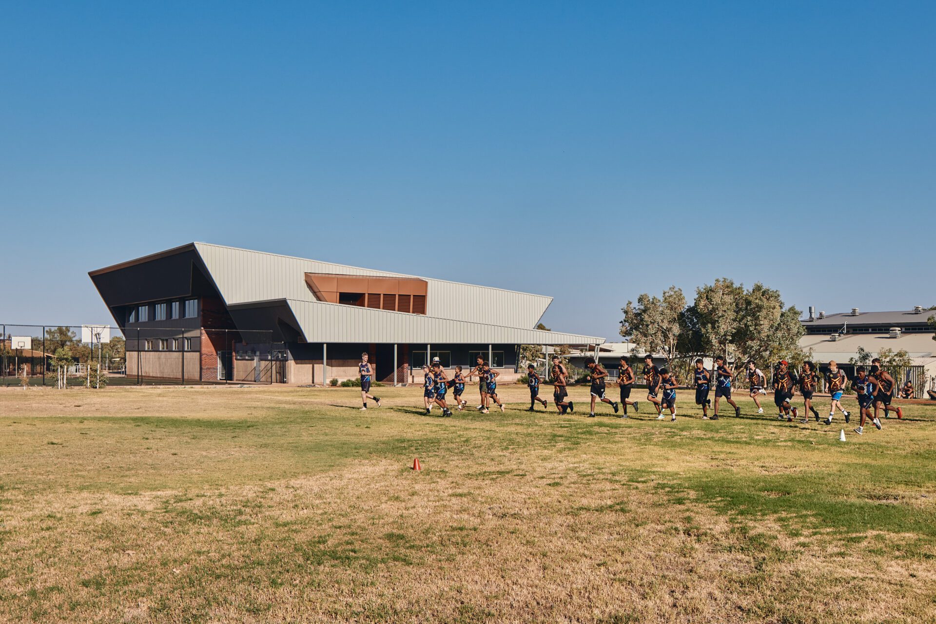 Construction in remote and extreme climatic regions requires design strategies that simultaneously create multiple benefits and outcomes. Opportunistically transforming structure in to shading and seating, swales into recreation space, creating inhabitable breezeways that reference important regional places, maximising view and natural light, considering durability and long-term weathering. These are economic considerations but also embody climatic, environmental and socially sustainable outcomes providing a long-term strategy for the development and growth of the school.