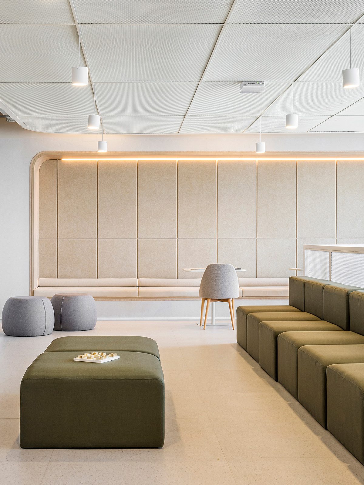 Faced with the challenge of highlighting the brands and their products in this multifunctional environment, the Perkins&Will corporate interiors team worked on a neutral base, giving personality to the spaces by combining different shapes, textures and touches of colour in carpets, wallpapers and coverings, which give the project sophistication and uniqueness. According to Guilherme Meneses, Project Designer at Perkins&Will, “the project started with the layout distribution and spaces occupancy, which evolved for the sensations that would be transmitted to users in each room of the new headquarters. The Moas Group house was created to be a place of interaction that inspires coexistence between people, whether in corporate environments, living spaces, decompression areas or the cafe. Its stage-house composition unites the group's three brands on a neutral basis that promotes connections and mutual exchanges.”