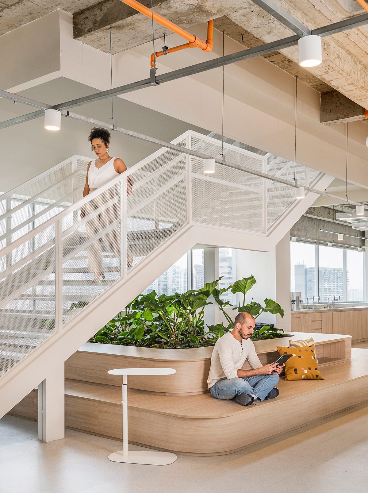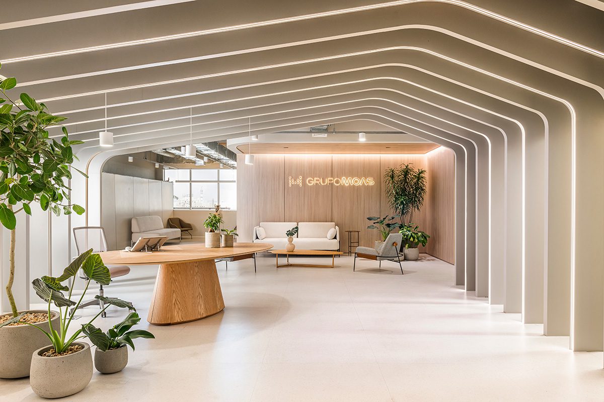 “The Moas Group invited us to build its new home, a space that goes beyond the traditional office concept by combining versatility and sophistication in environments that welcome users, whether they are part of the corporate team or Moas’ clients”, shares Carlos Andrigo, Senior Project Designer at Perkins&Will. The brand house is organized on two floors: one with a greater concentration of workstations and collaboration structures, and the other focused on social interactions, with training spaces, a cafe, meeting rooms and a showroom, the main feature of the new headquarters that offers 360° views of the city.
