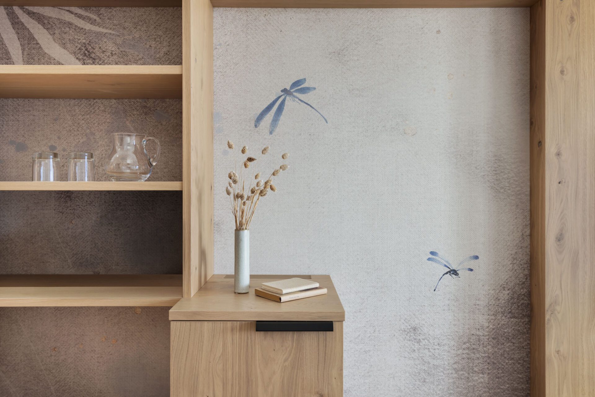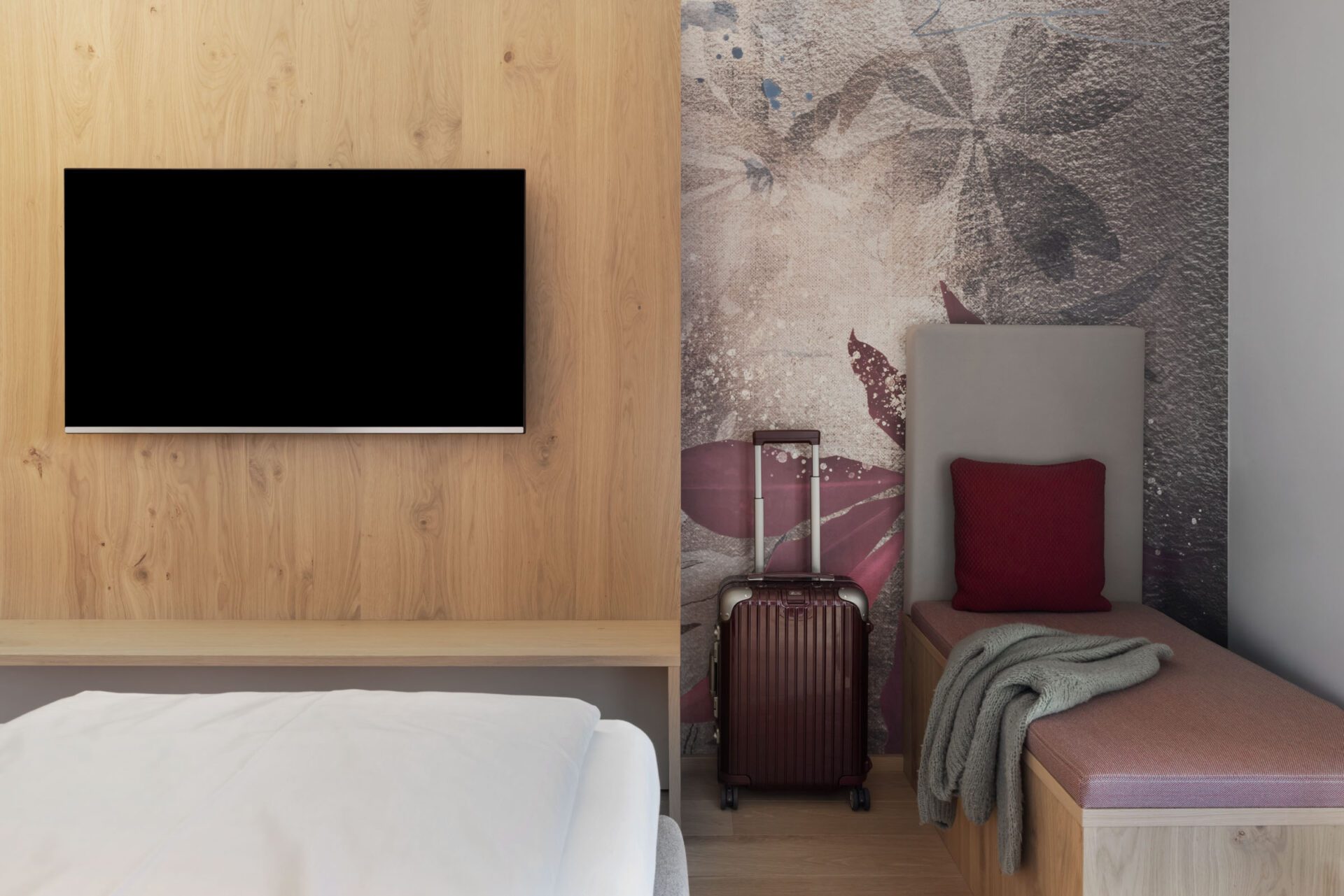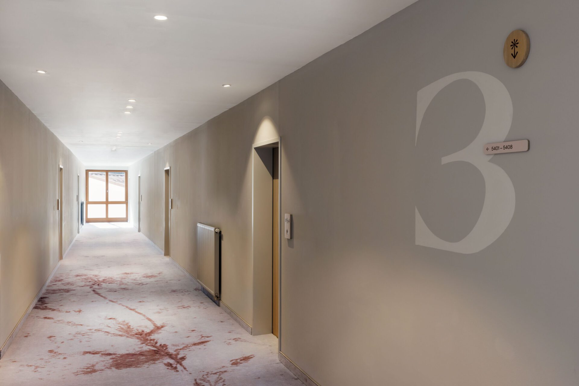 A key focus lies in integrating the surrounding landscape while ensuring a design that appeals to both older and younger guests. Open shelving, expansive windows that invite natural light even into the bathrooms, and a palette of soft earth tones and water-inspired hues define the hotel's new look. Thoughtful functionality meets refined comfort, with premium sleeping systems, cozy lounging and seating niches, and carefully considered details such as walk-in showers and separate restroom areas enhancing accessibility and ease of use.