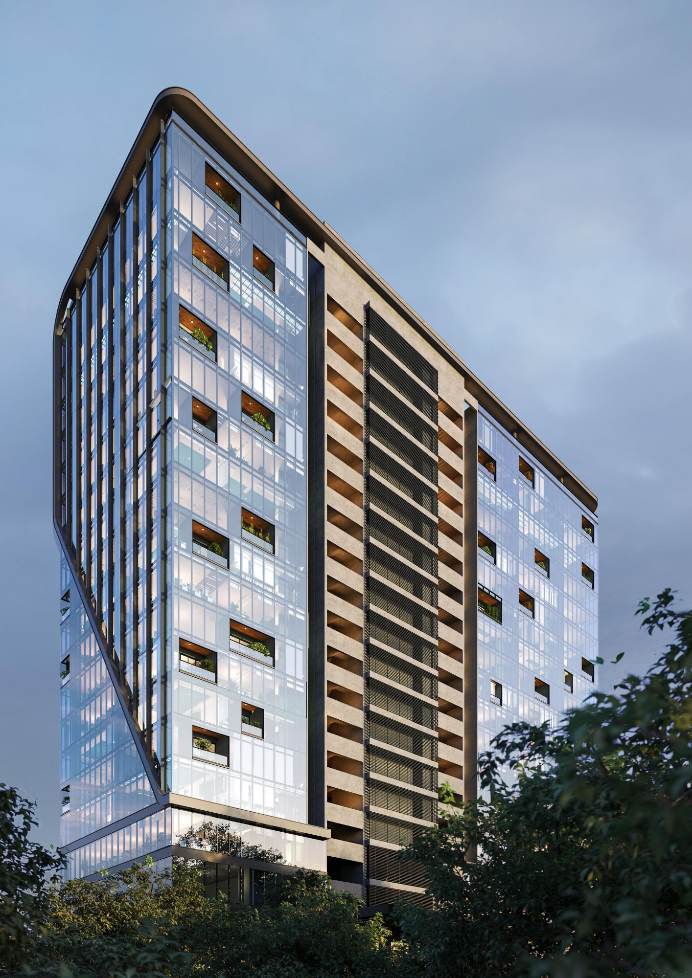 Our design further sets a new benchmark for environmentally conscious commercial development. We envision the use of low-emissivity glass and argon-filled double-glazed panels, minimizing the heat inflow. This increases comfort for its occupants and significantly reduces the need for air conditioning with the buiding. The air conditioners use Variable Refrigerant Volume (VRV) technology that uses the minimum energy required to maintain a comfortable temperature. Additionally, the building features a water recharge system that lessens dependence on local water sources, and an on-site sewage treatment plant enables water reuse for gardening and flushing, thus implementing sustainable resource management techniques.