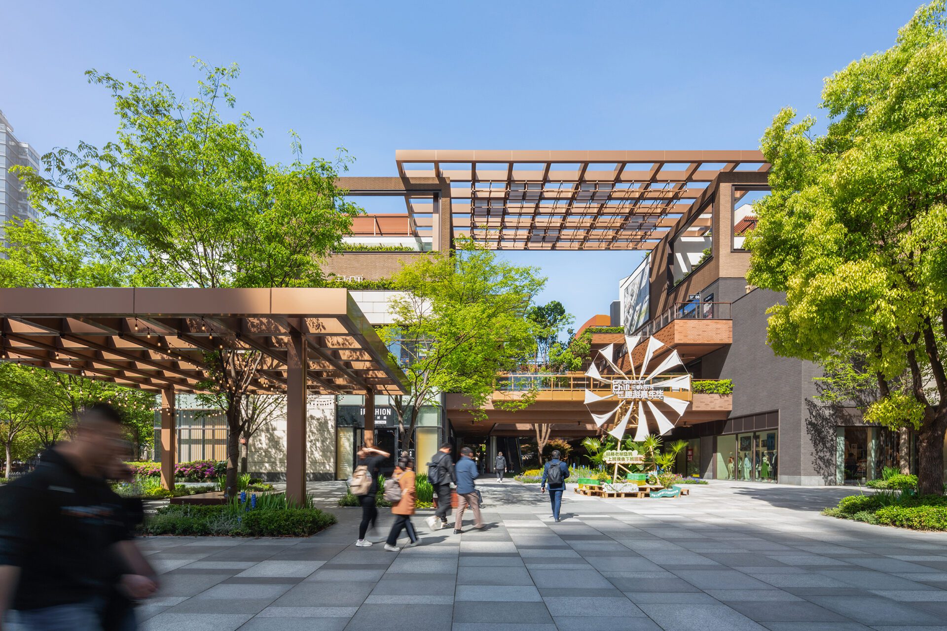 The project is characterized by its open network of commercial streets. Such characteristics have an ingenious commonality with a“traditional village”. We envisioned a “Garden Village”with transcendent qualities of cognitive experiences, aiming to elevate the biophysical, cultural, and social values of the project. Our design classified streets into “lifestyle scenes”. Different lifestyle zones have varying garden characteristics and textures. Small-scale geometric gardens harmoniously blend in with the overall form of the architecture, creating renewed public realm with a great sense of warmth and belonging. Eight themed gardens are placed within the street block to create rich garden village experiences. We preserved and re-used existing elements as much as possible.