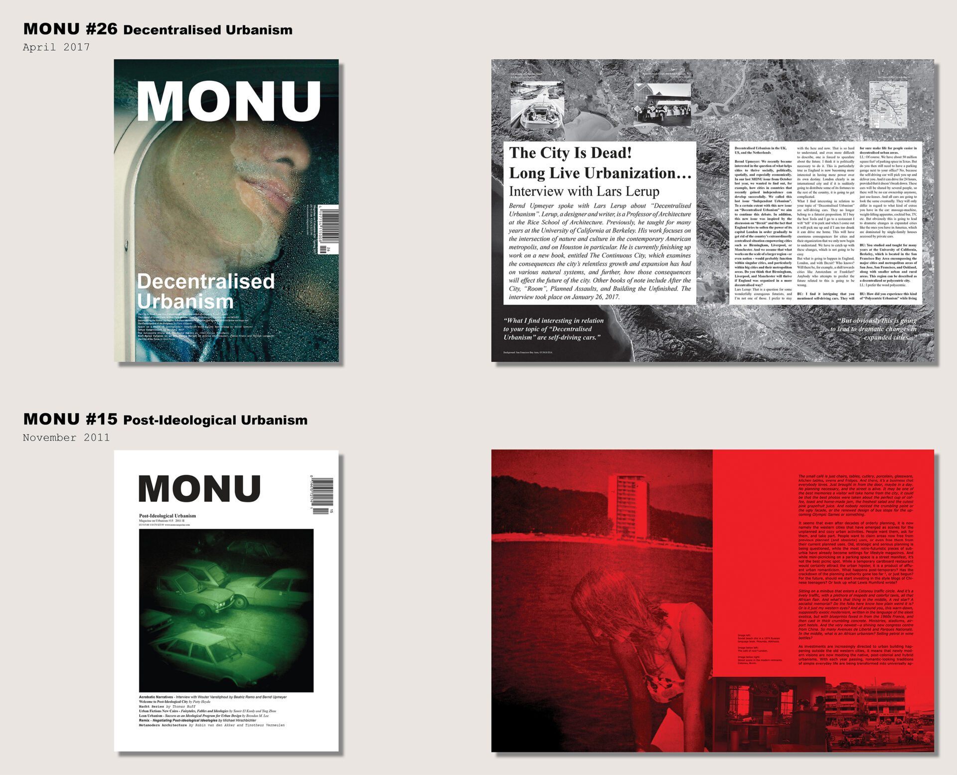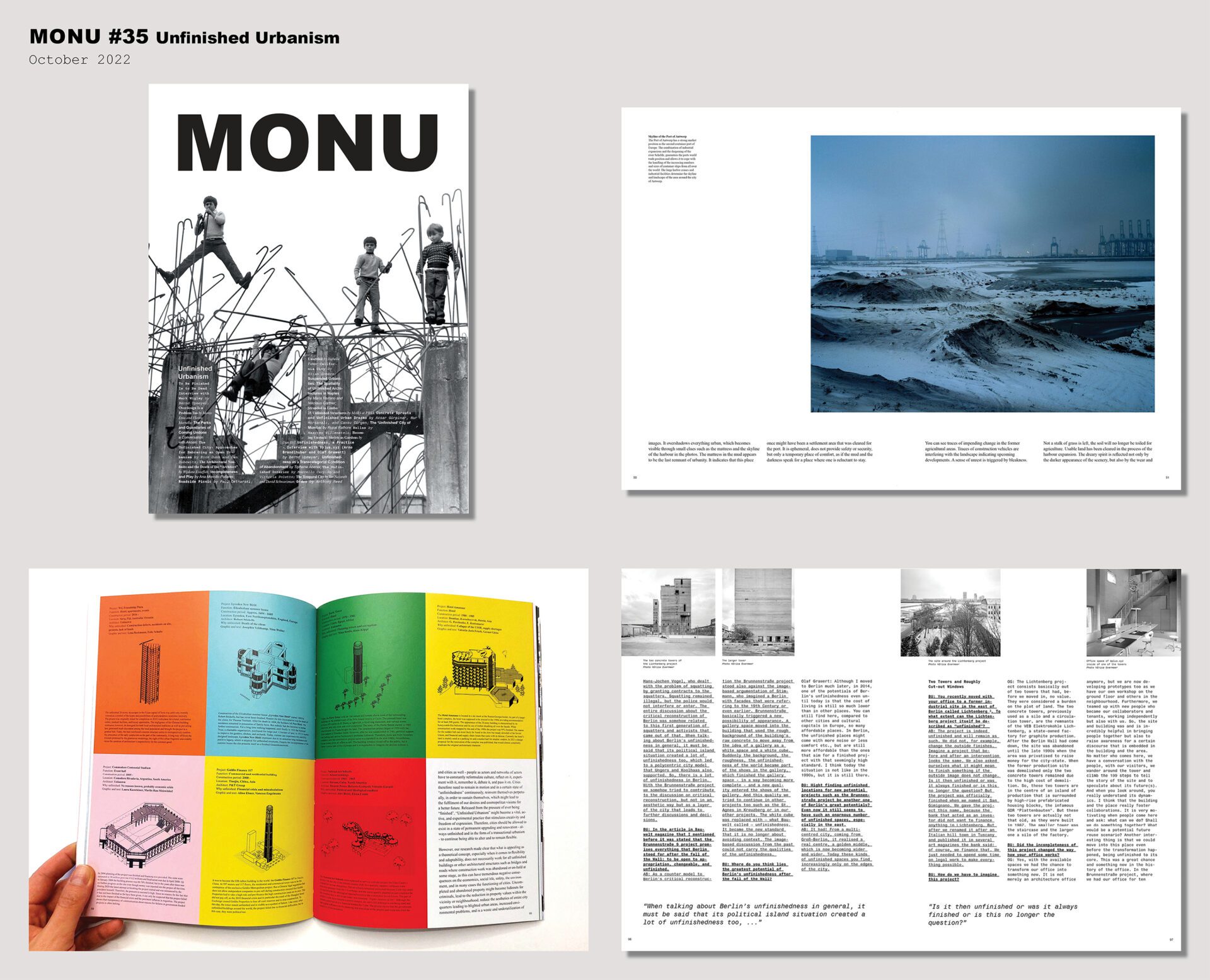 MONU is an annual independent international magazine for architects, urbanists and theorists working on urban topics. MONU focuses on the city in a broad sense, including its politics, economy, geography, ecology, its social aspects, as well as its physical structure and architecture. Therefore, architecture is one of many fields covered by the magazine - fields which are all brought together under the catch-all term “urbanism”.
