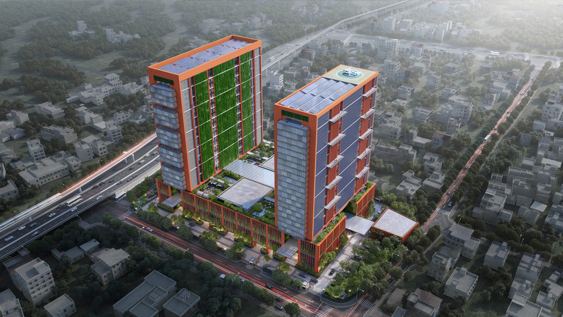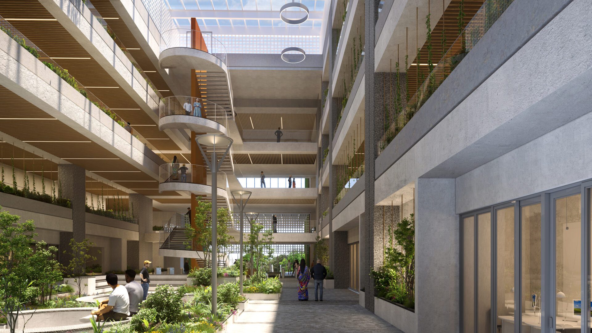 • Sustainability: Targeting net-zero energy consumption with features like solar panels, green walls, rainwater harvesting, and passive design strategies.