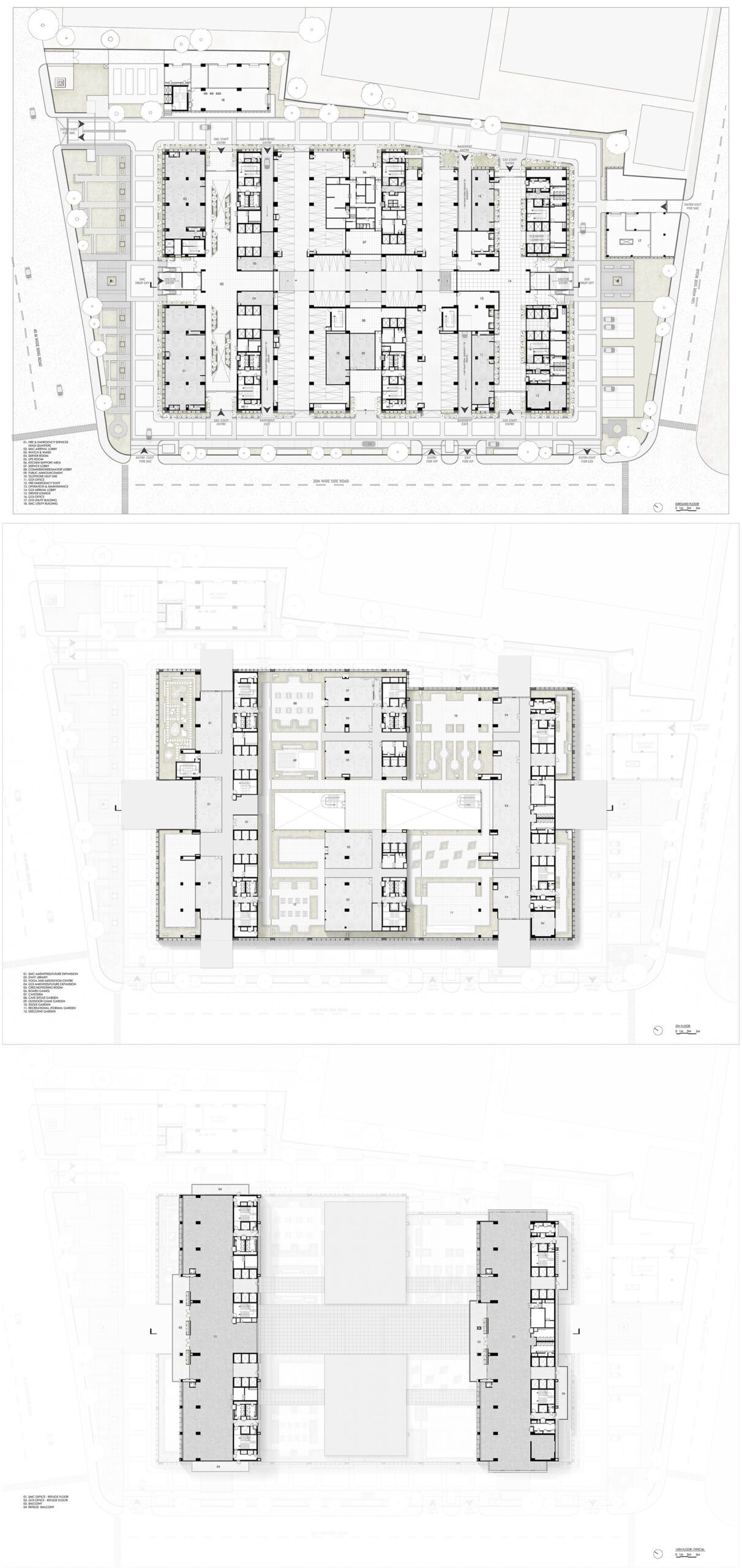 Home to 39 departments, accommodating 3,000-4,000 staff and up to 700 daily visitors, the SMC Tower is designed for both efficiency and sustainability. The campus targets net-zero energy use, integrating the latest smart technologies, to ensure seamless operations. Safety and accessibility are paramount, with earthquake-resistant structures, planned fire evacuation routes, and facilities for differently abled individuals. Break-out spaces on the podium and terraces offer staff areas for relaxation and collaboration, enhancing the overall work experience.