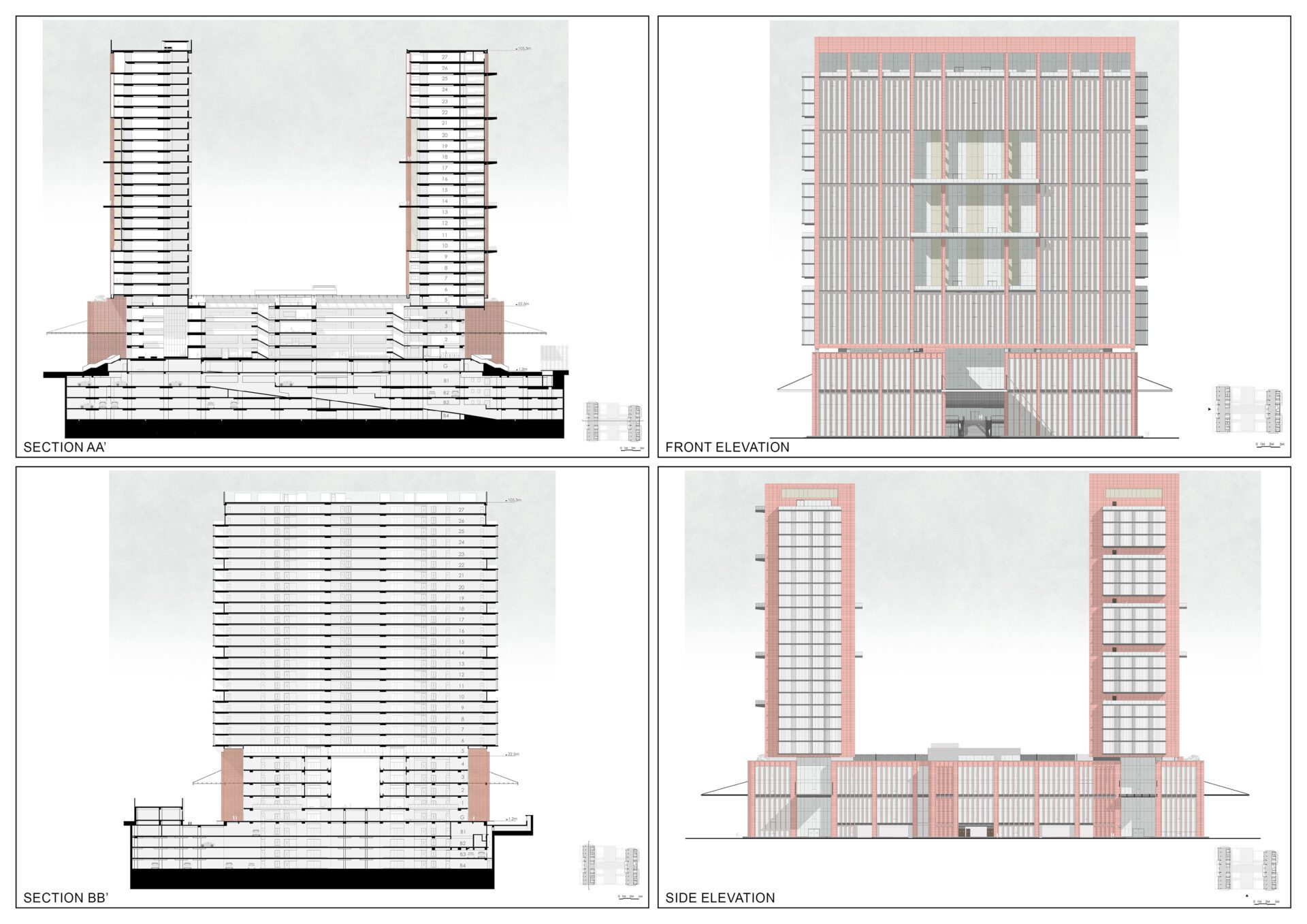 The SMC Tower project is a visionary development that blends modern architecture with sustainable practices, aiming to create a vibrant and functional hub for public and administrative activities. The design is centered around a podium + tower concept, where the podium hosts essential public services such as an information center, help desk, canteen, and auditorium, creating a welcoming and efficient space for daily visitors. The twin towers rise above, offering flexible and contemporary office spaces with ample natural light and panoramic views.