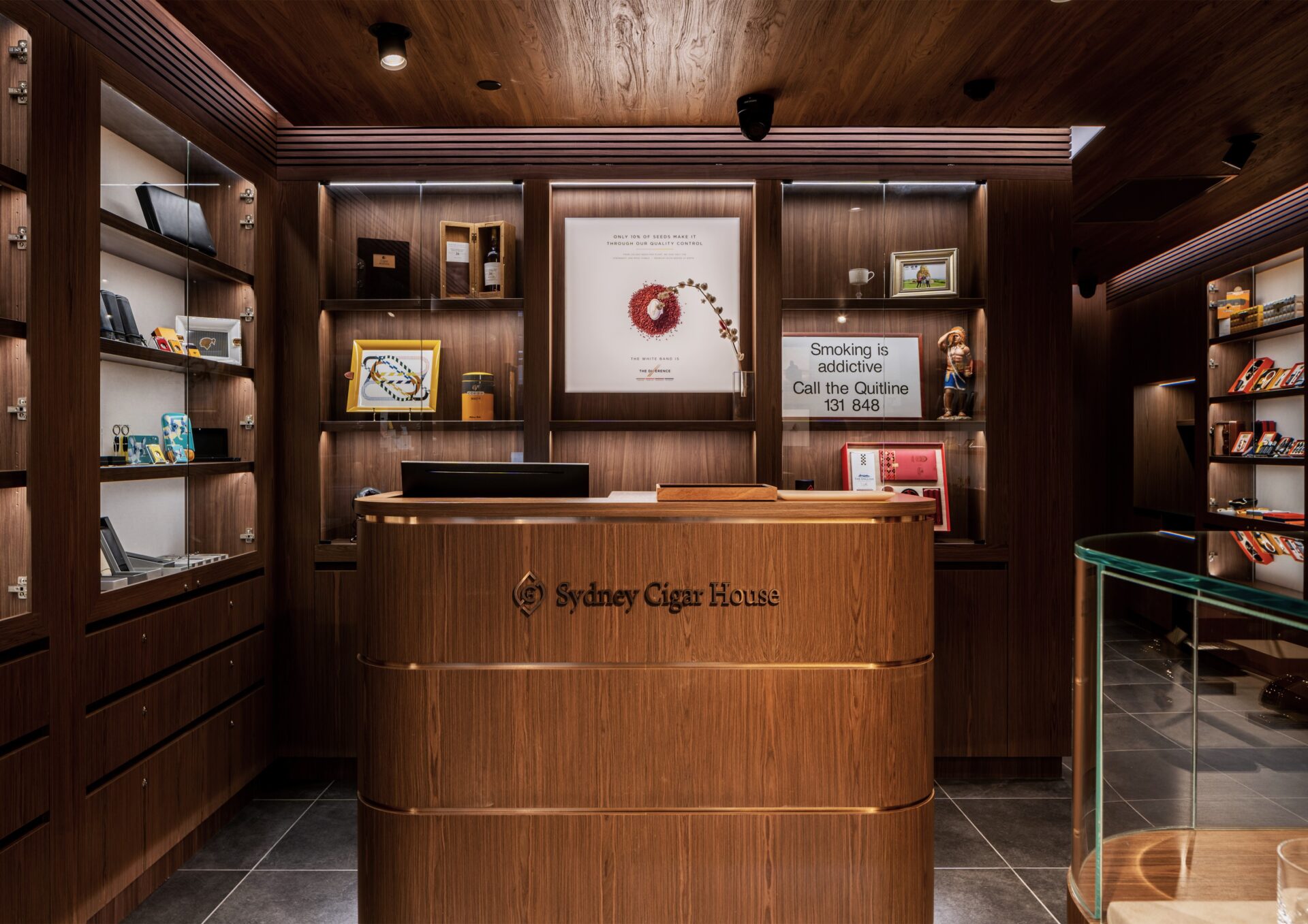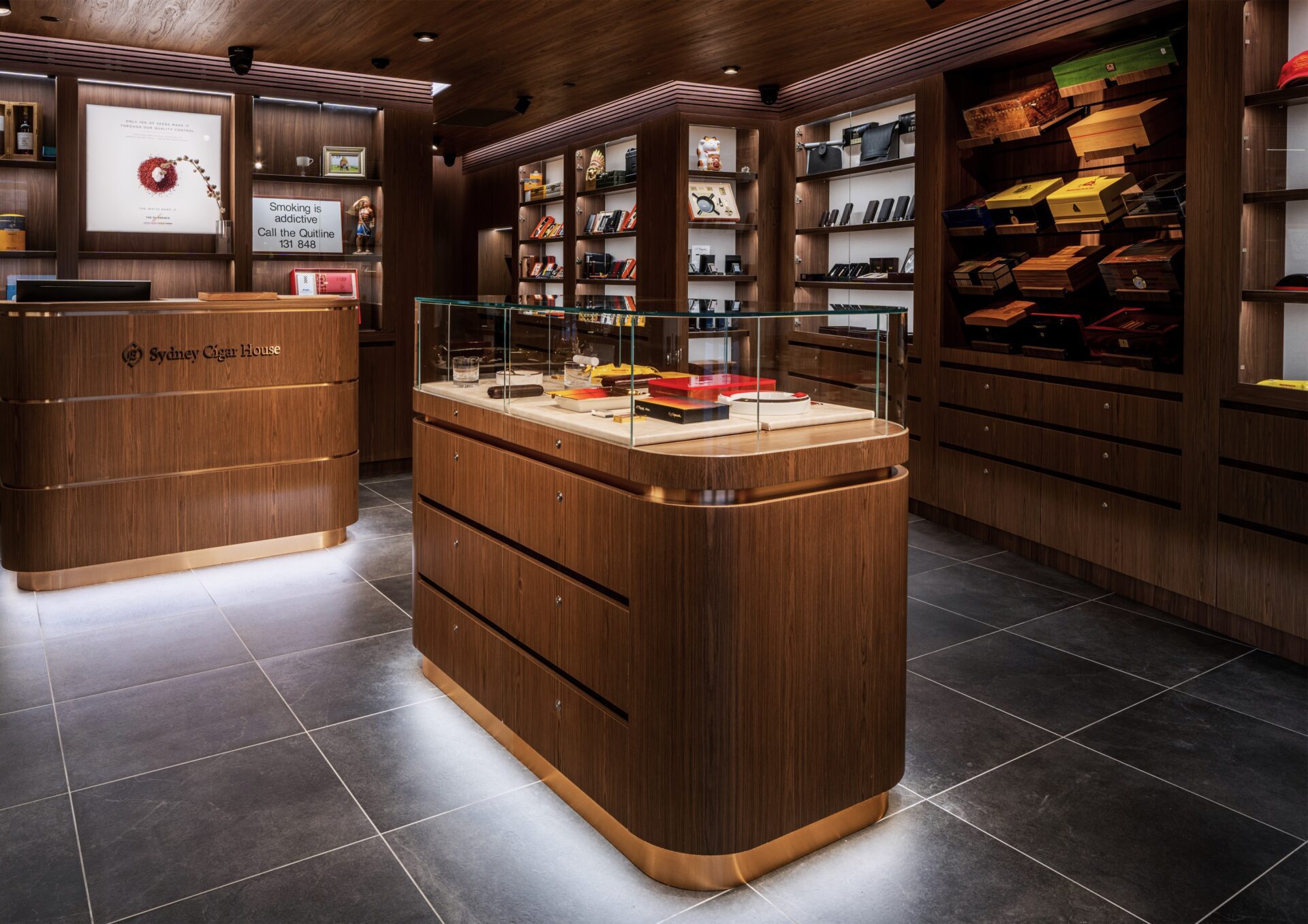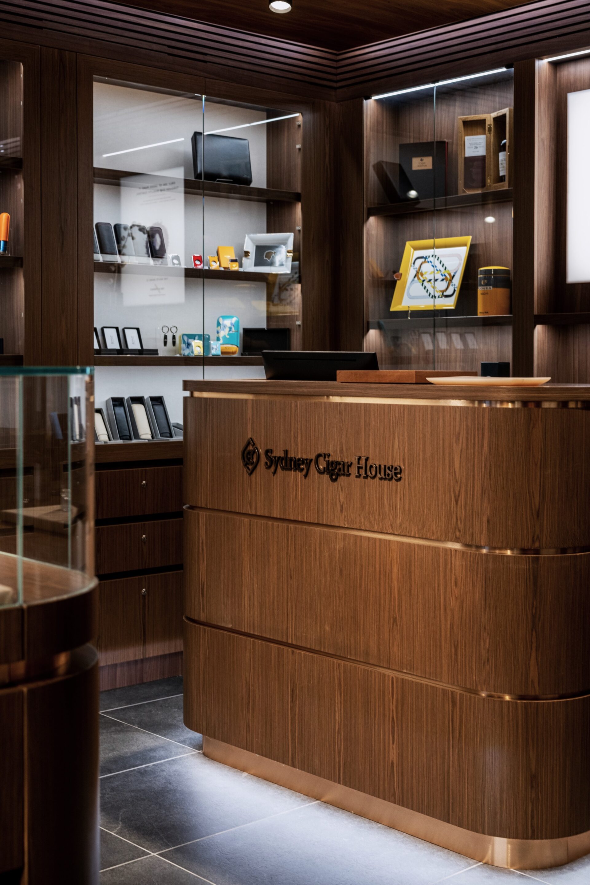Situated in the bustling commercial district of Sydney’s Eastern Beaches, Sydney Cigar House is a premium boutique specializing in high-end cigars and associated luxury accessories, including lighters, smoking tools, and sophisticated storage solutions. The design concept is centered on curating an environment that reflects the brand’s exclusivity and refinement, employing high-quality materials and meticulous craftsmanship to establish an ambiance of sophistication and understated luxury.