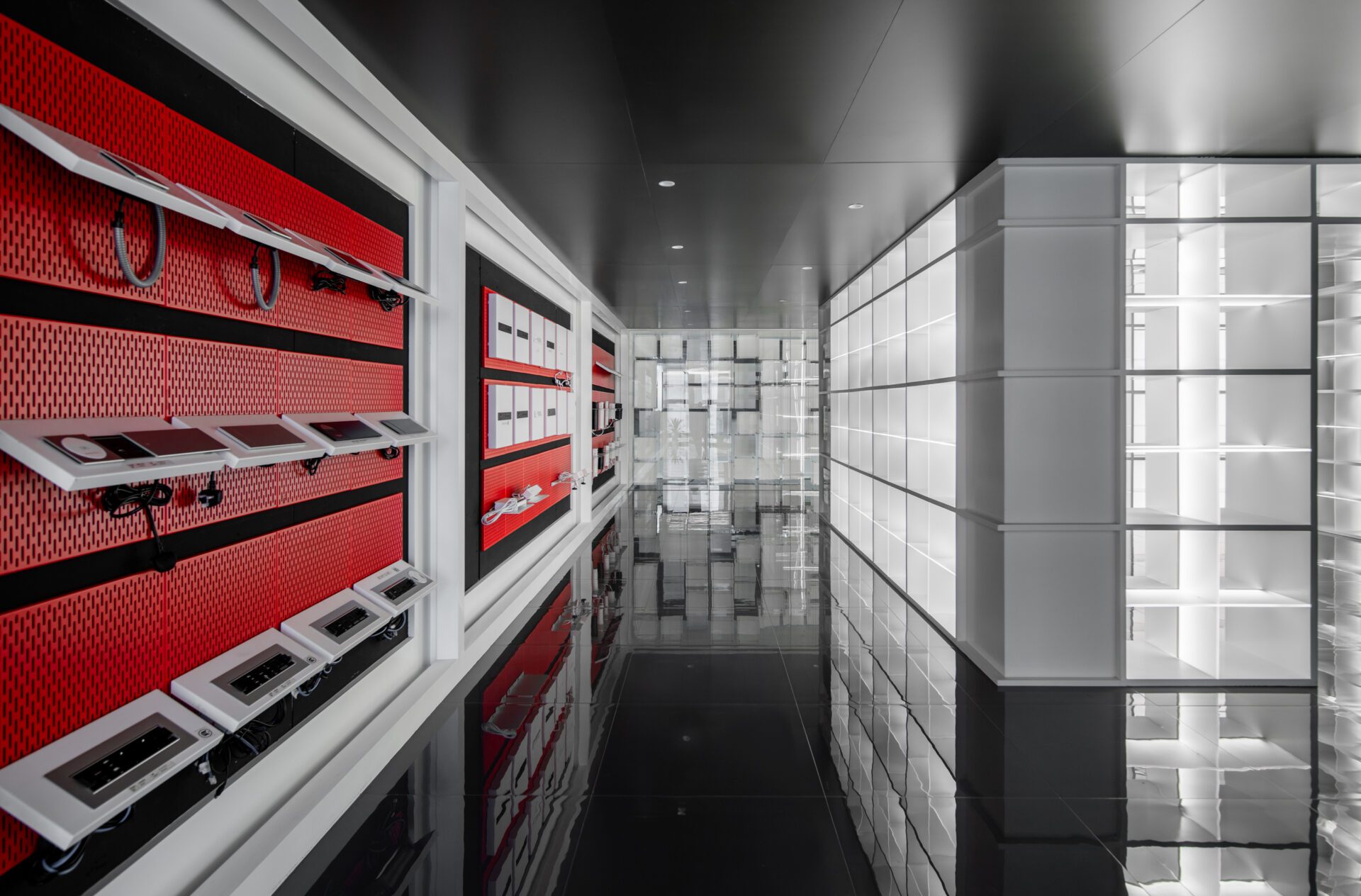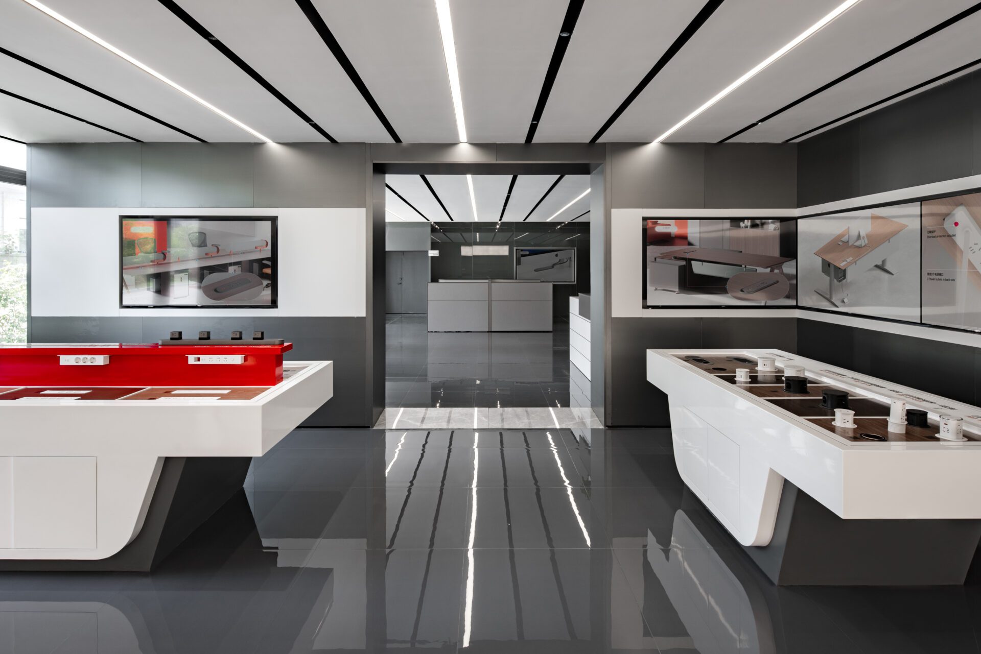 Exiting the showroom, visitors pass through a time corridor highlighting the company’s milestones, connecting to the production factory representing the company’s present operations. The past and future of the enterprise are simultaneously displayed, creating a space that activates customer perception and interaction.