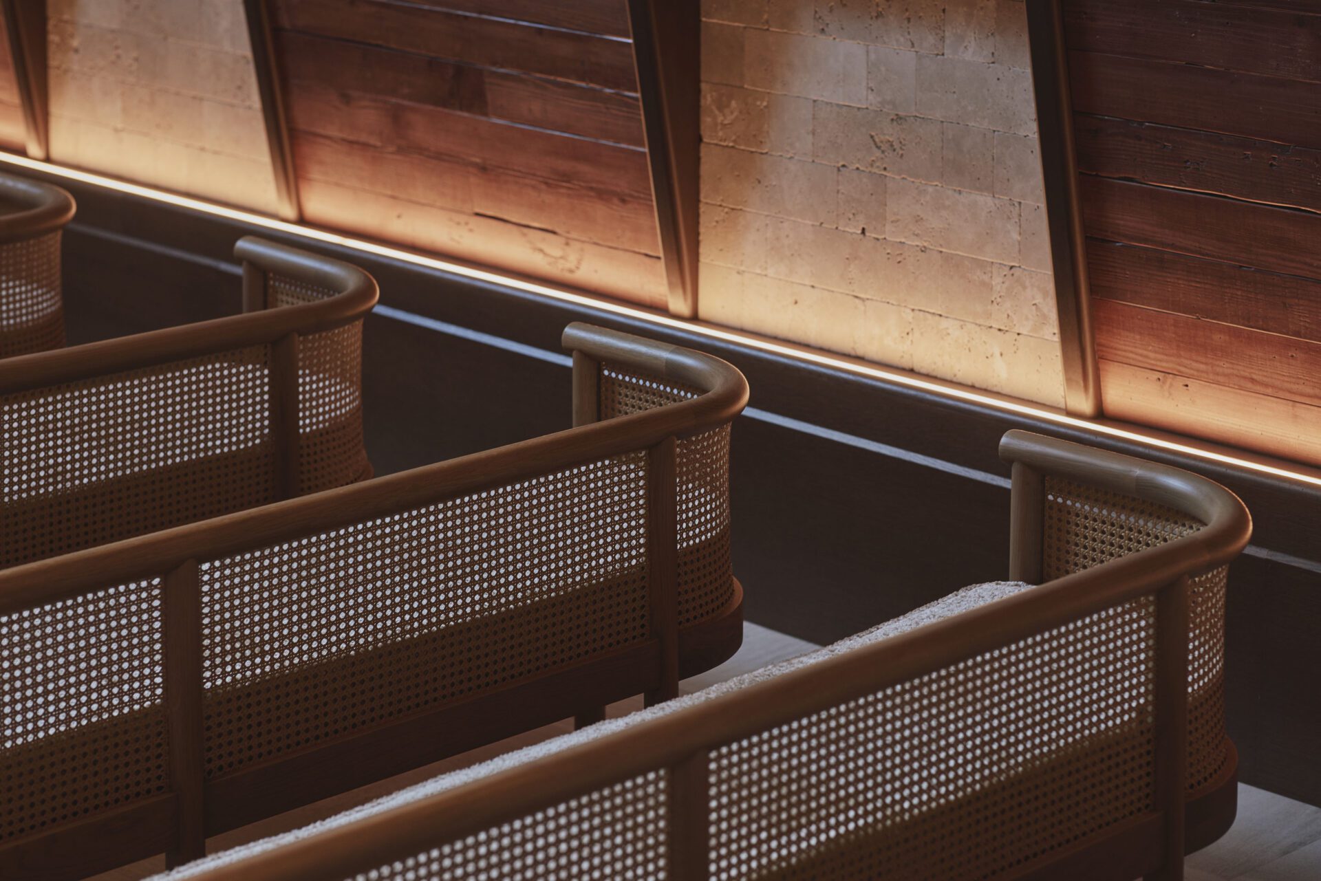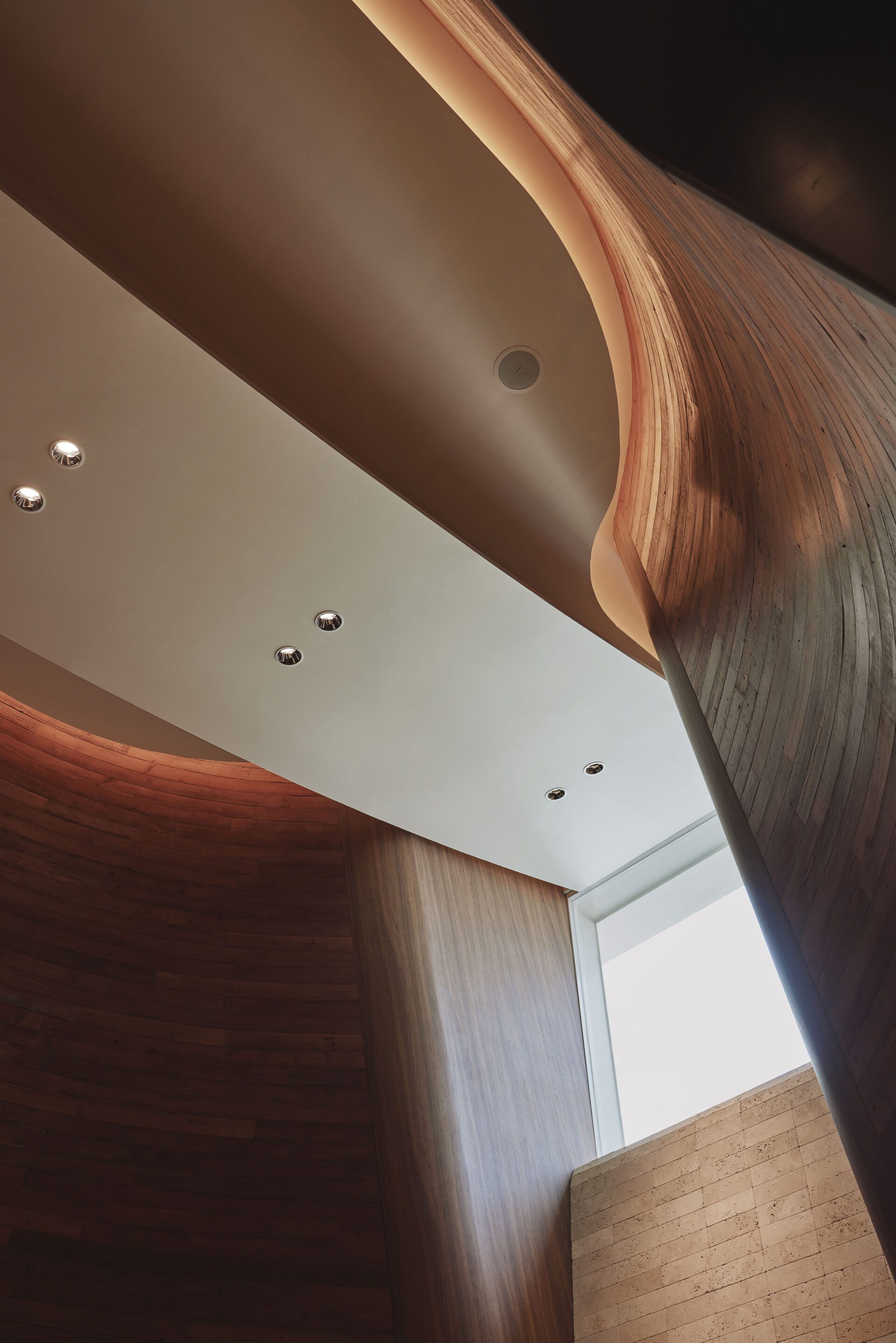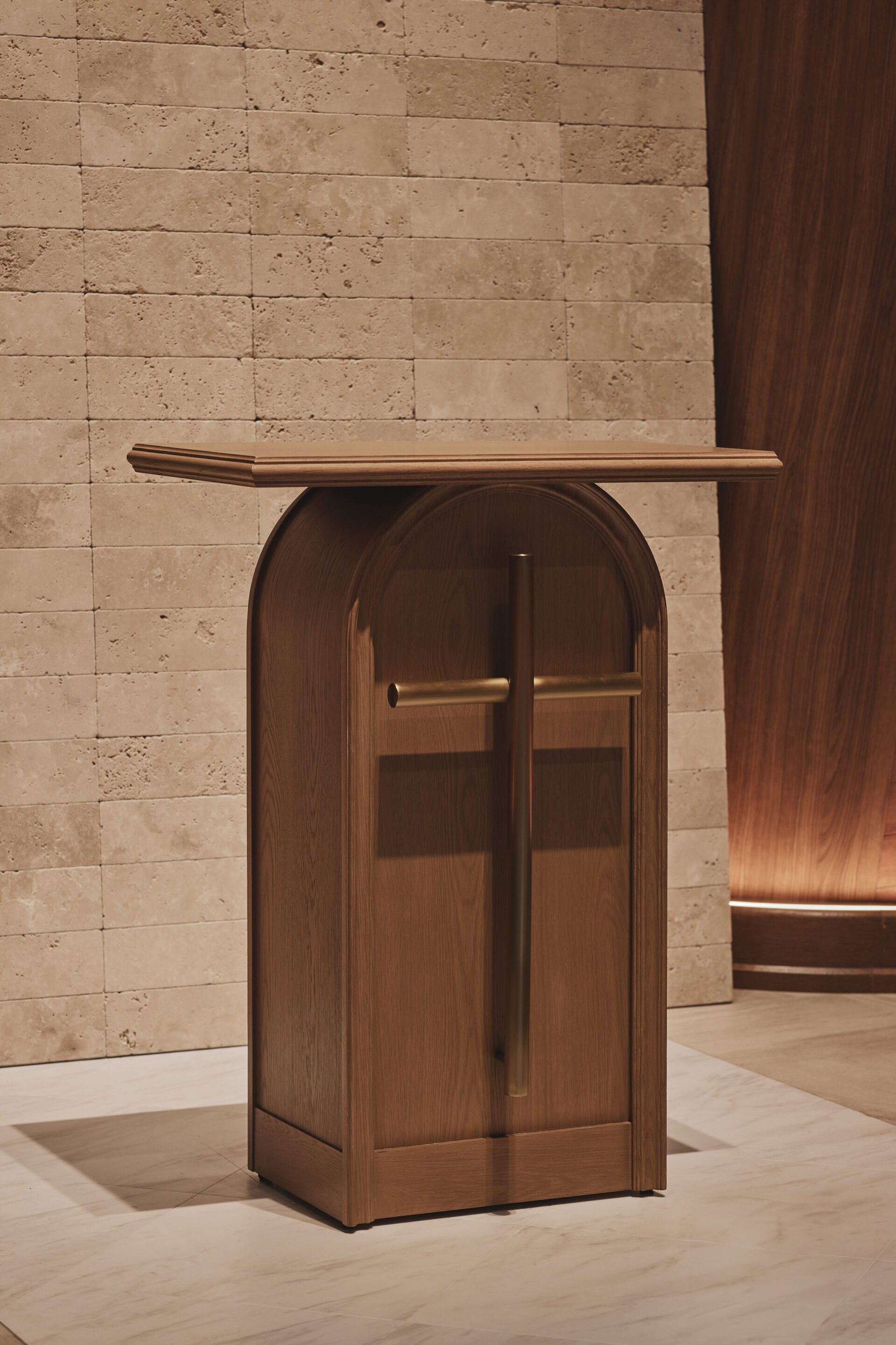 We designed the space to incorporate the "pleasant breeze" that passes through the sea and these elevated areas. As an accent material, we adopted antique-finished travertine. The stone design pays homage to the "Bluff Masonry" (Bluff-Zumi) seen in the retaining walls of the Yamate area, a construction style named after the region's historical nickname, "The Bluff." It also draws inspiration from the brick architecture of the former foreign settlement.