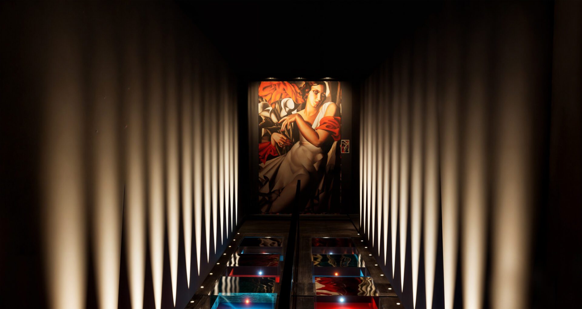 To anchor this concept emotionally and visually, the sauna interior draws inspiration from the works of Tamara de Lempicka, a Polish artist whose bold portraits, sensual curves, and cubist compositions defined art déco at its most iconic. Her paintings become more than just references – they are the spiritual axis of the space.