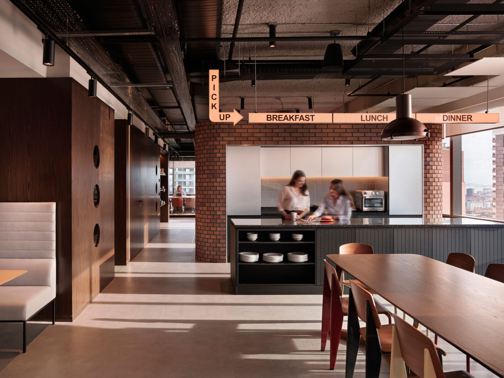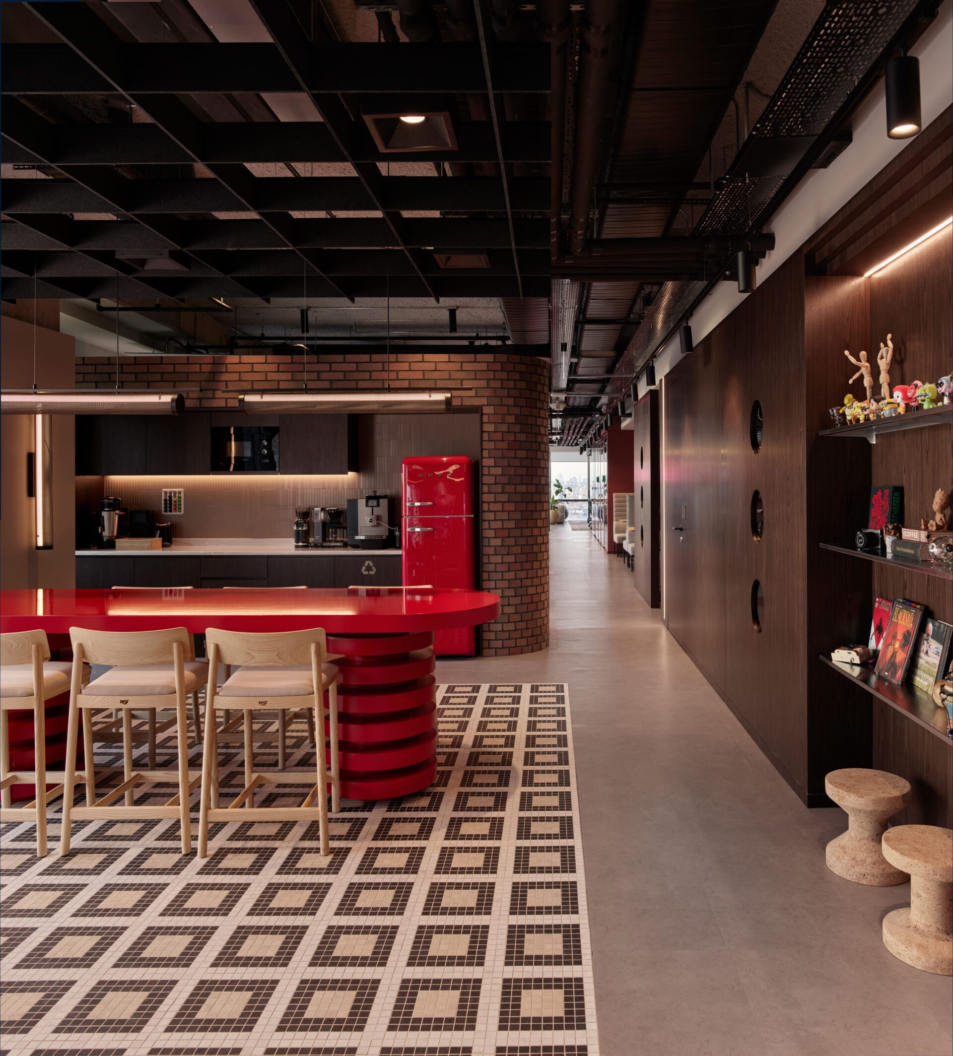 Drawing inspiration from industrial elements such as brick walls, wooden accents, and concrete finishes, the design modernizes these features to reflect a contemporary workplace infused with a youthful and fresh ambiance. The strategic use of layered, tactile materials creates a unique and welcoming atmosphere, seamlessly blending design principles with the fundamental needs of a productive workspace.