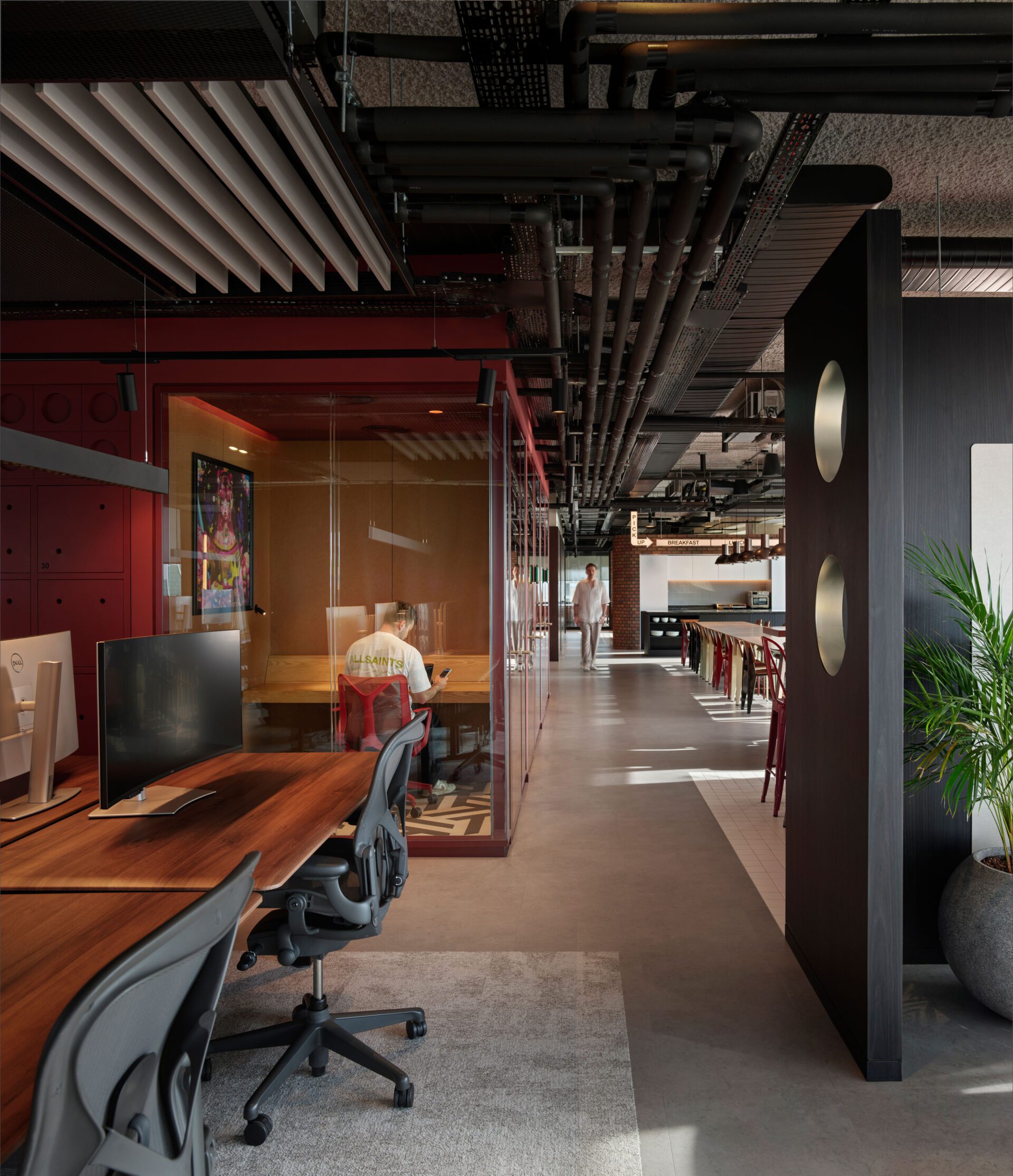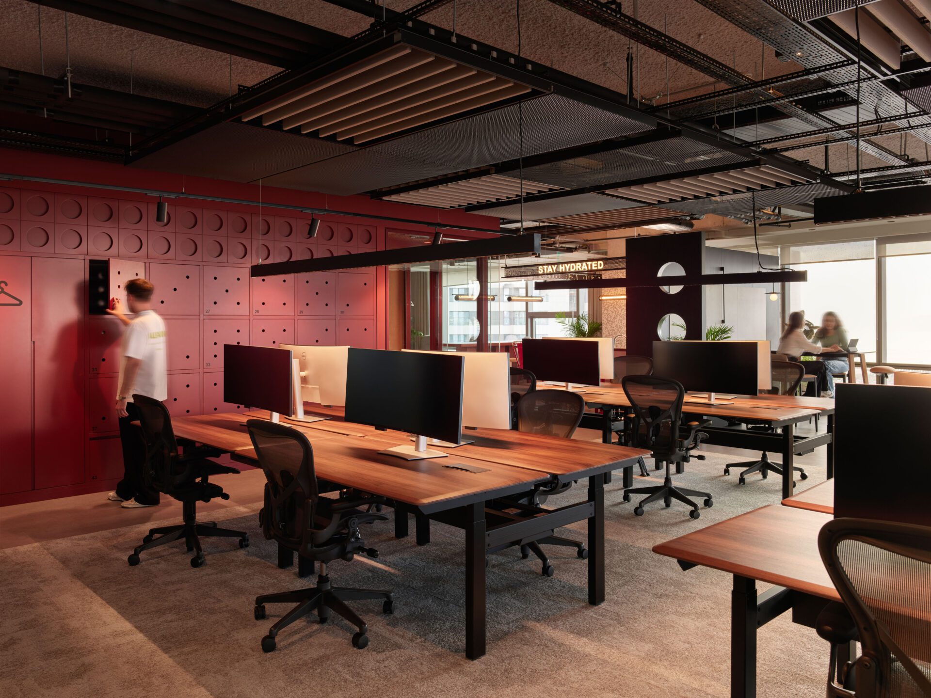 The office layout fosters open communication, encouraging teams to collaborate, share knowledge, and thrive in a fun, engaging environment. Open workspaces are thoughtfully designed to prioritize employee well-being, incorporating natural daylight and carefully selected functional materials that enhance concentration and minimize external distractions. This harmonious environment reflects the brand while prioritizing the comfort and productivity of its occupants.