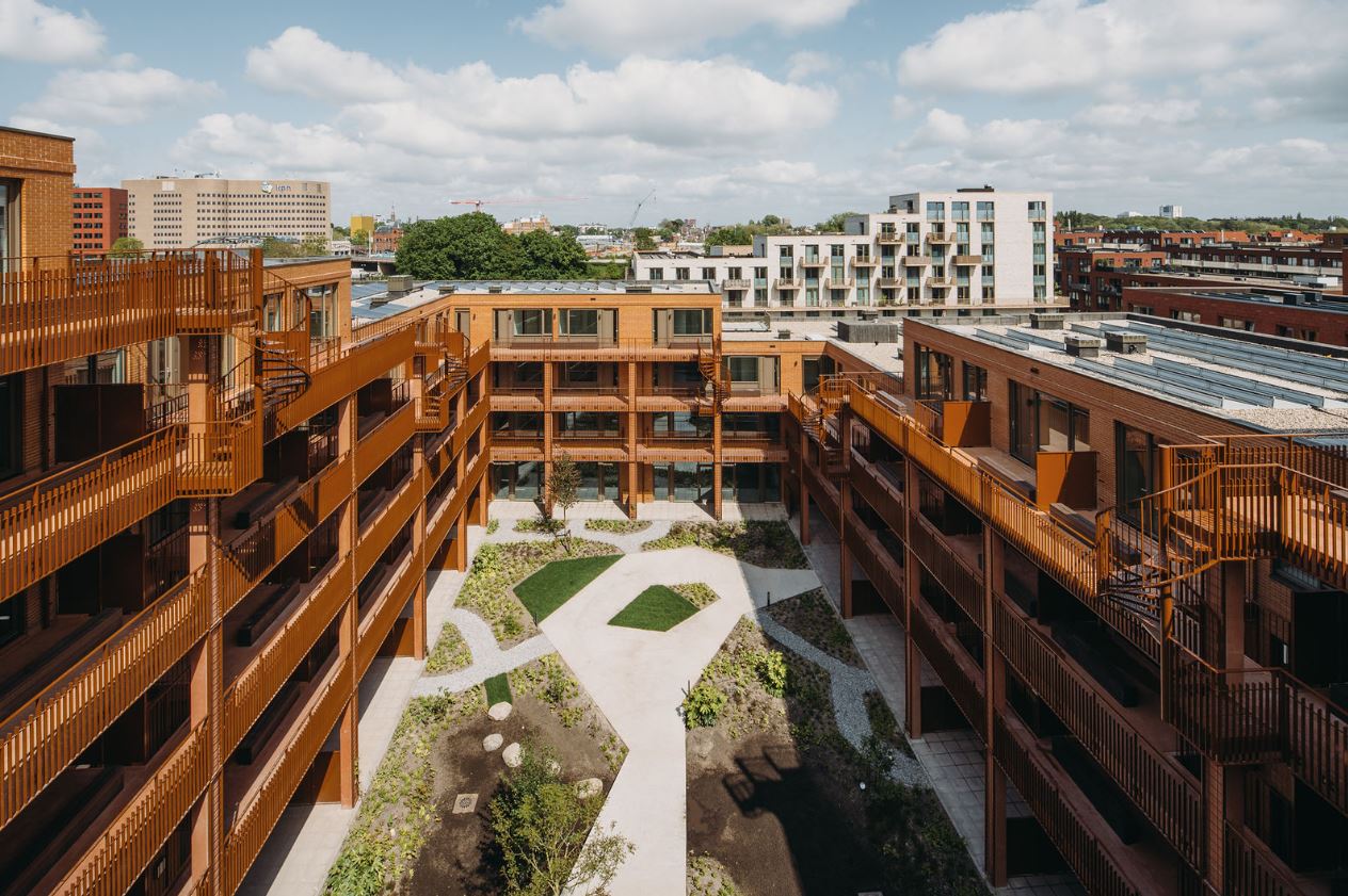 The post-war Gruno neighborhood in Groningen is undergoing significant development and transformation. The recently completed residential building, Regulateur, is the sixth block in the renovated neighborhood, for which Felixx designed the communal courtyard.