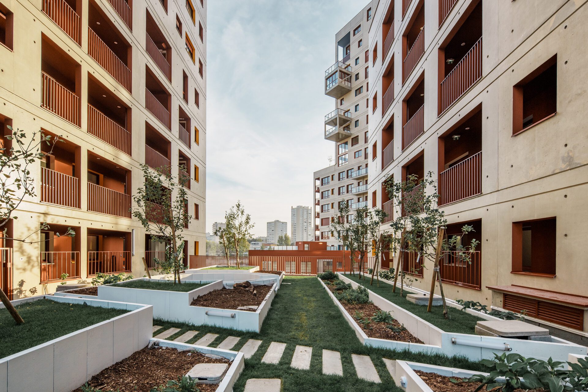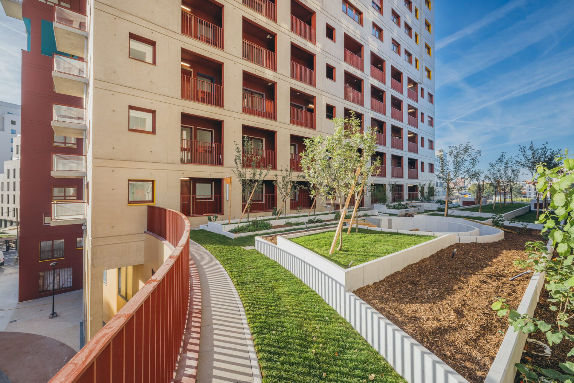 The presence of the roof garden provides a much-needed space and permeability between the volumes of the START project. In the midst of the densely packed program of START, this common planted terrace offers many qualities to its residents: spaces to relax, socialise and to enjoy the unimpeded views towards the Seine, the new Lise Meitner Square below, as well as the newly created commercial street. Its oblong shape allows not only for great views on both sides of the garden, but creates several different zones for relaxation too.