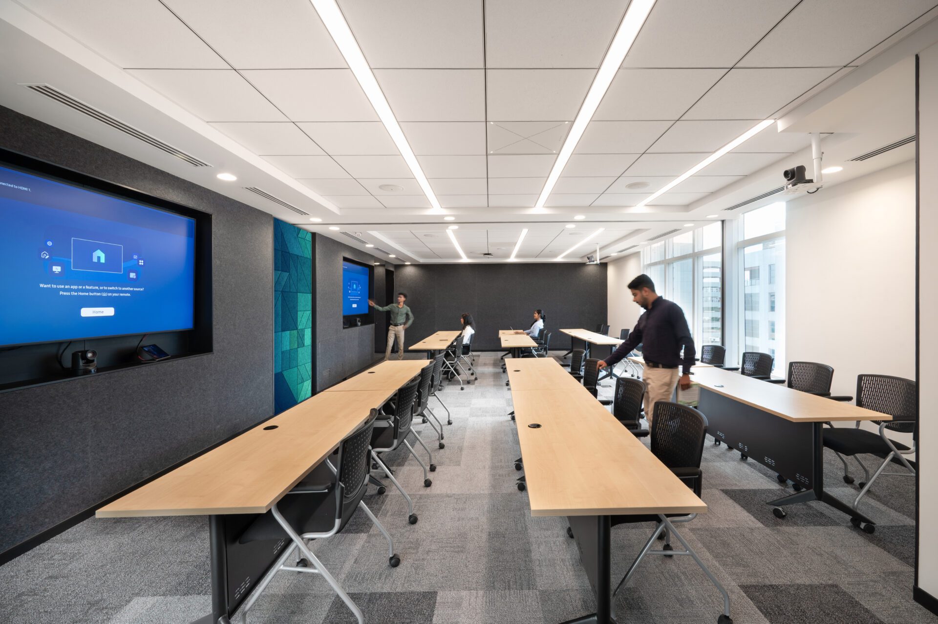 • The training room, equipped with an induction loop system and dual-display setup, enables inclusive, tech-enabled learning for diverse formats.