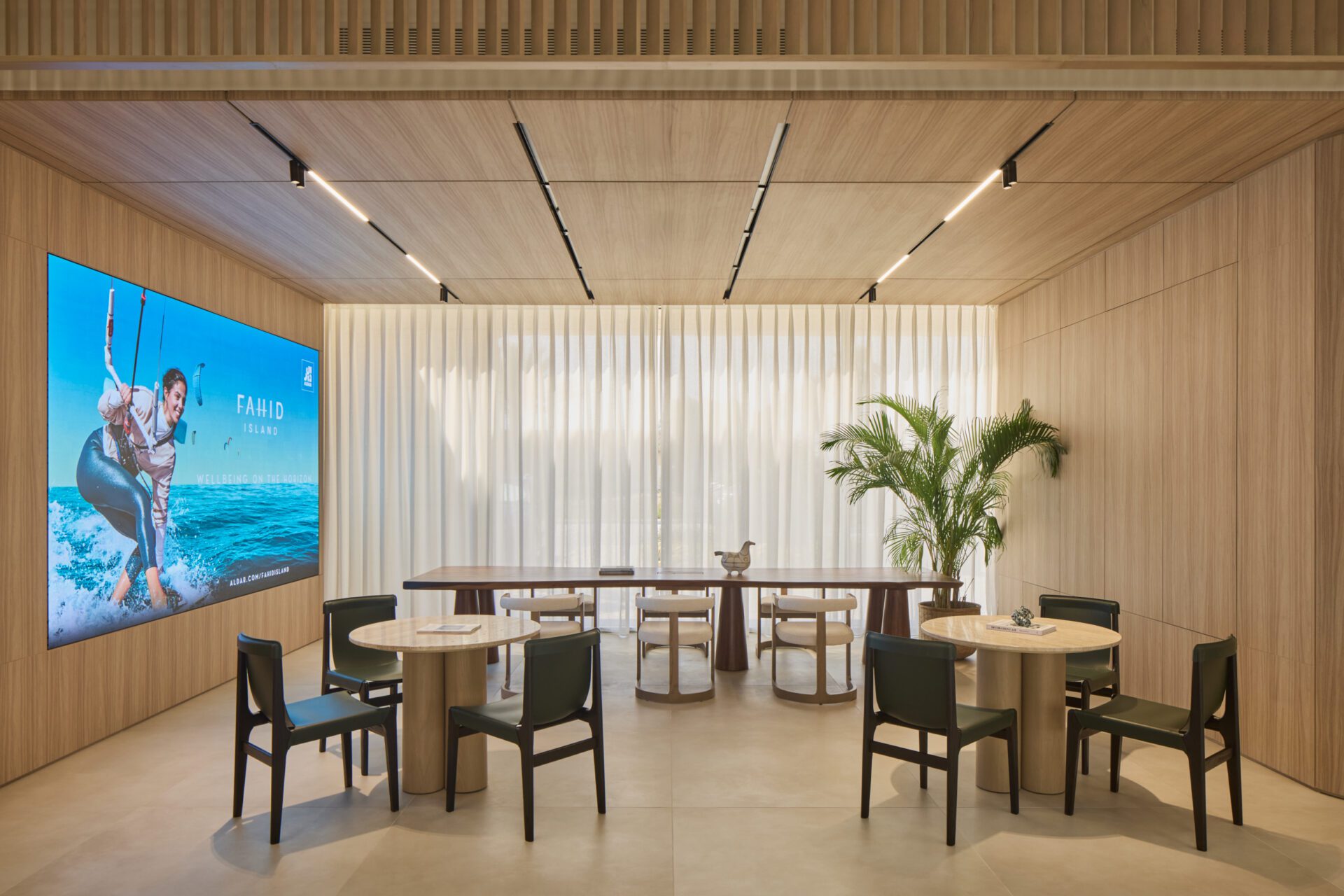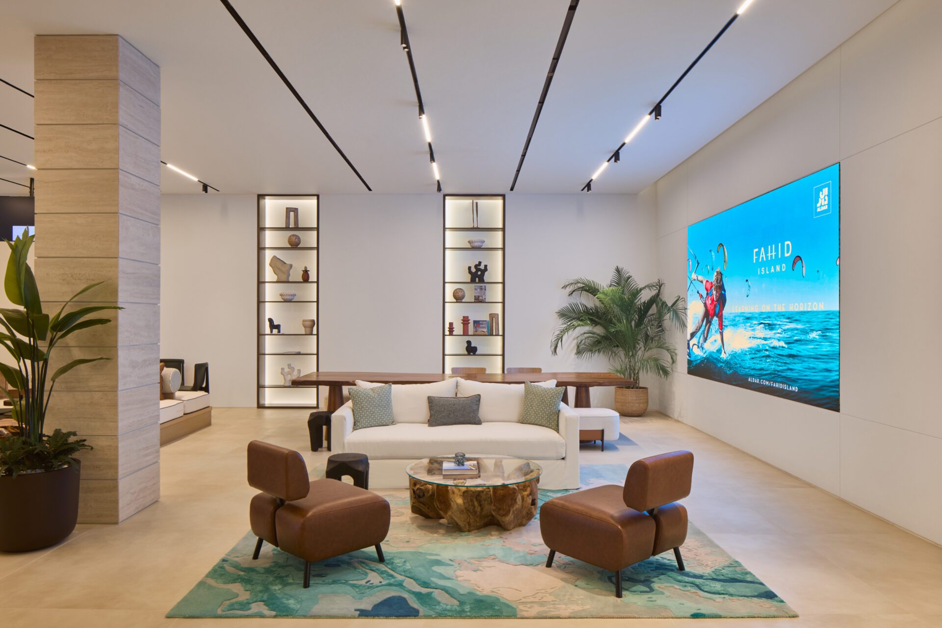 Inspired by the timeless charm of the Mediterranean, the design of the Al Fahid Sales Center draws from the elegant aesthetics of Greek, Italian, and Spanish coastal living. The concept, “Mediterranean Escape,” was developed to embody the authentic spirit of the island, seamlessly infusing its character into every aspect of the interior.