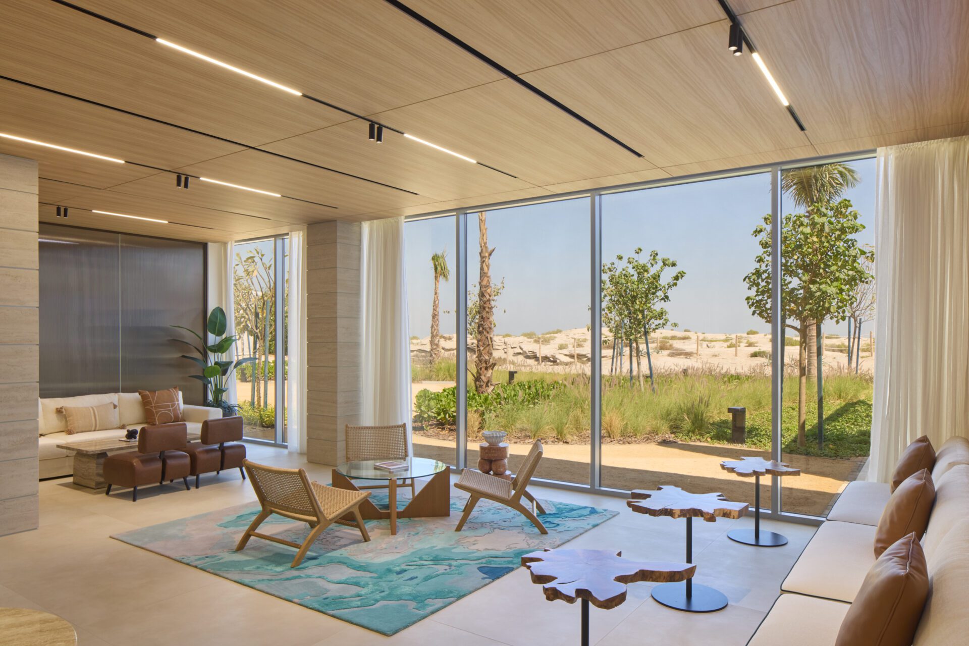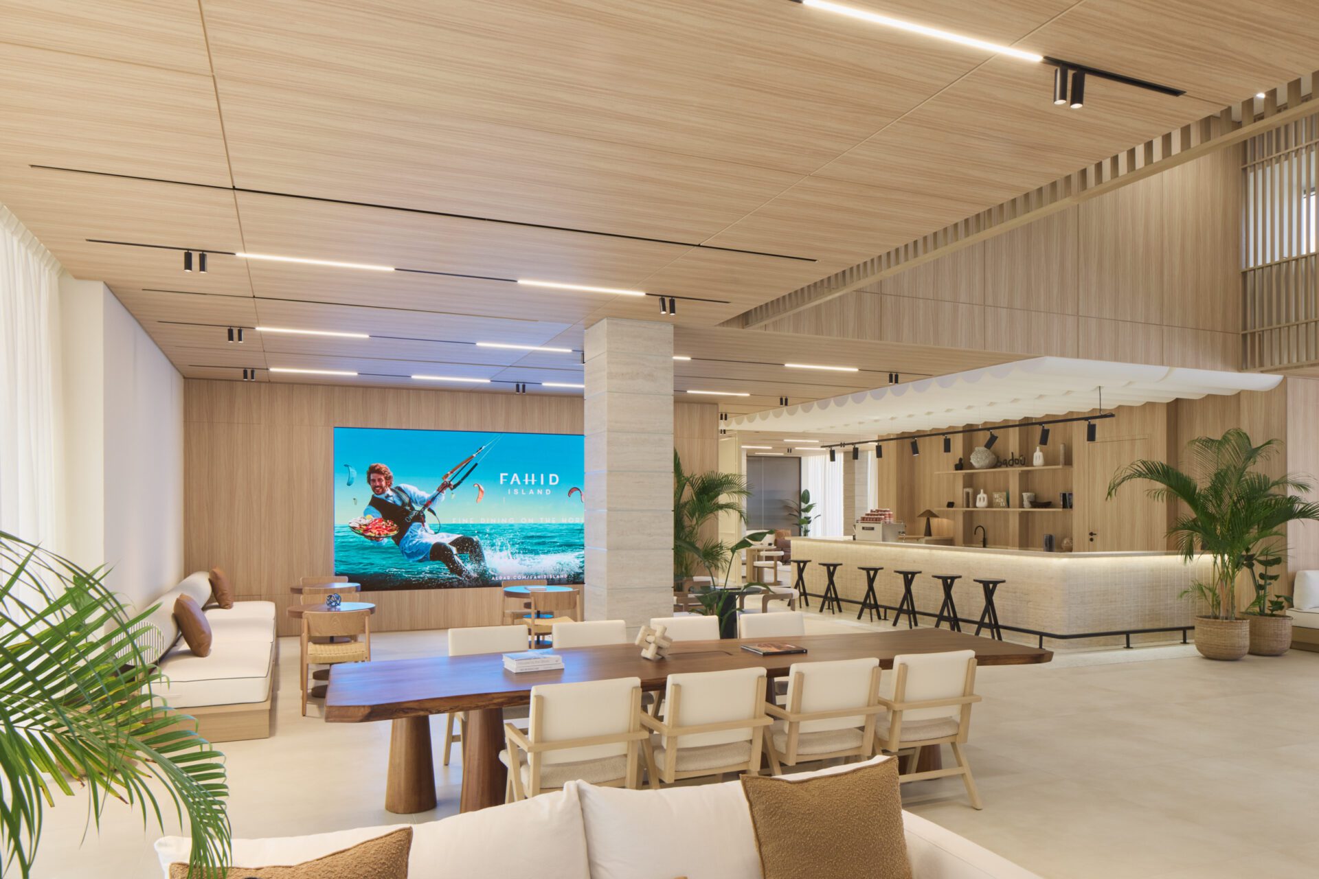 The journey begins at the entrance, where visitors are greeted with a framed view of the sea — an immediate invitation into a serene and immersive experience. From there, a carefully curated sequence of spaces unfolds, each evoking the tranquility, warmth, and effortless sophistication of coastal life.