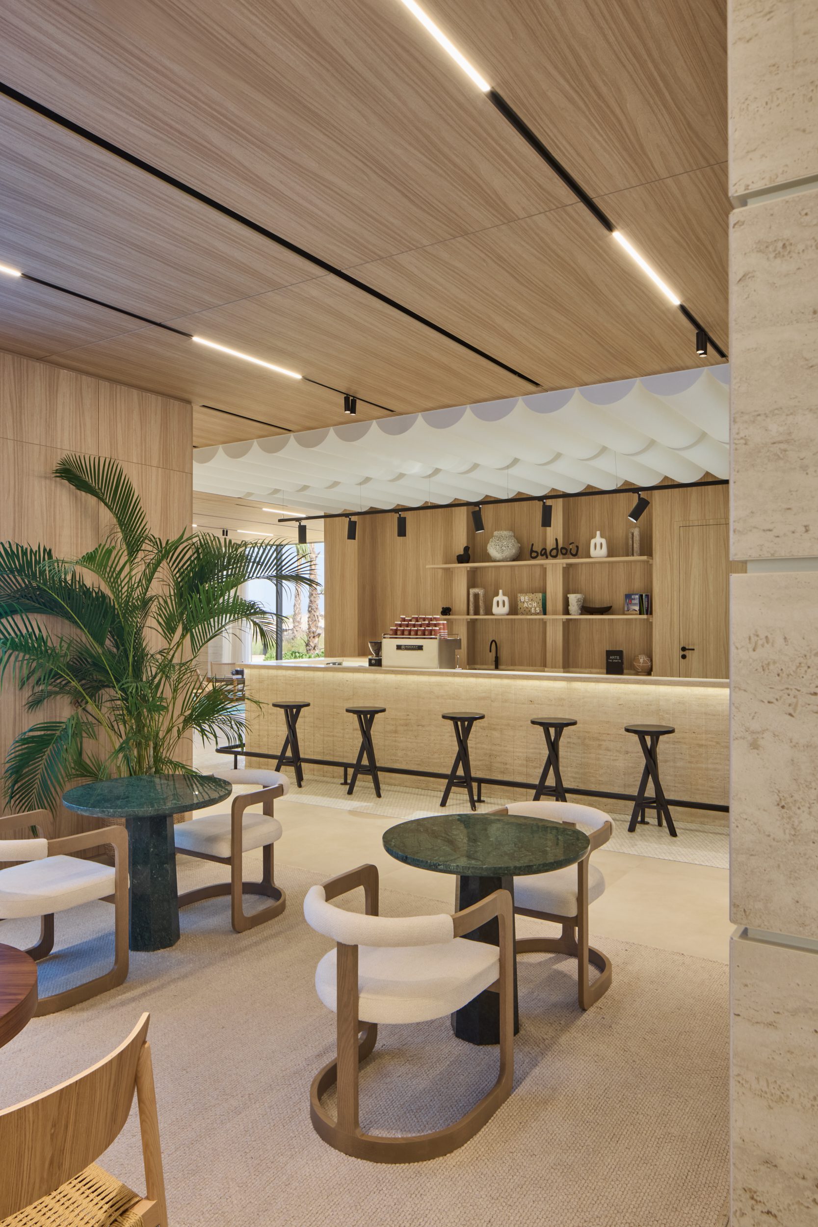 Every design detail has been thoughtfully selected to enhance the sense of place. From the ambient lighting and café tiles to the textures of the lounge area carpet, each element reflects the island’s identity and supports a calm, welcoming environment where visitors can feel at ease and inspired.