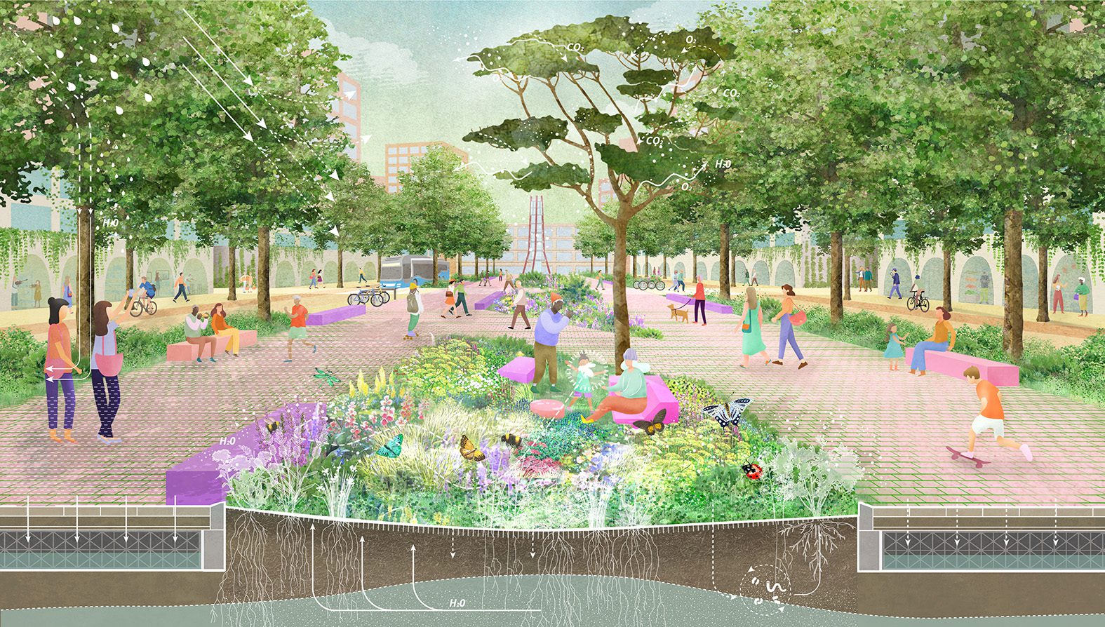 Almere is poised to experience significant growth over the next 30 years, with its population projected to swell from 220,000 to 350,000 residents. This expansion not only promises to invigorate the city, but also stimulate regional housing demand. Central to this transformation is the imperative to densify the heart of the city. Despite boasting an intercity station and a plethora of amenities, Almere currently hosts one of the Netherlands' least-populated city centers. To address this, efforts are underway to bolster its core by increasing its residential capacity. By 2030, a minimum of 5,000 additional homes are slated for construction, with the potential for up to 15,000 new residences by 2050. This ambitious endeavor aims not only to revitalize the economic heart of its center, but also enhance its amenities and cultivate a more appealing and verdant public space. The overarching objective is to create a dynamic and sustainable city center capable of withstanding the challenges posed by the changing climate, to ensure Almere's continued prosperity well into the future.