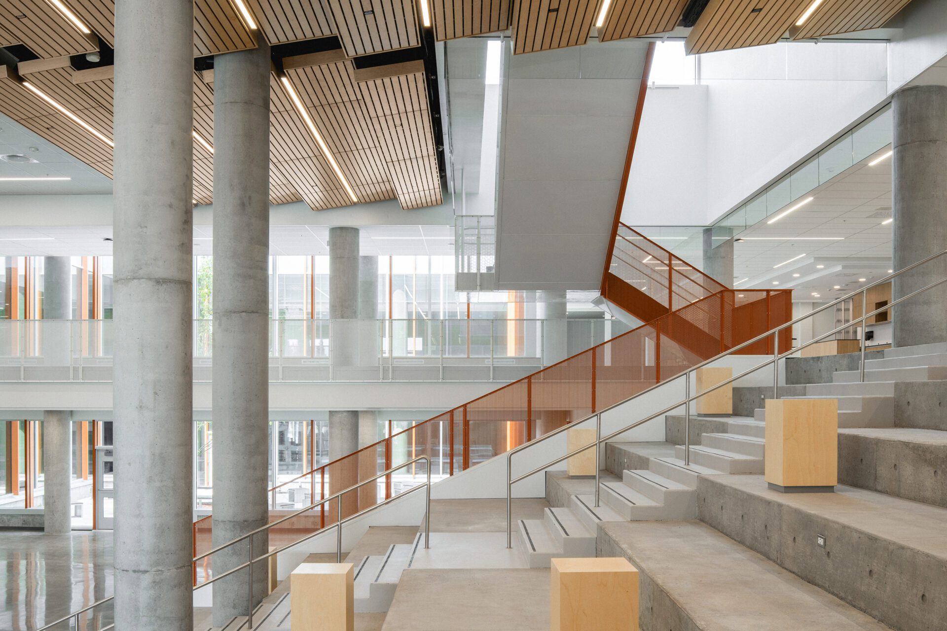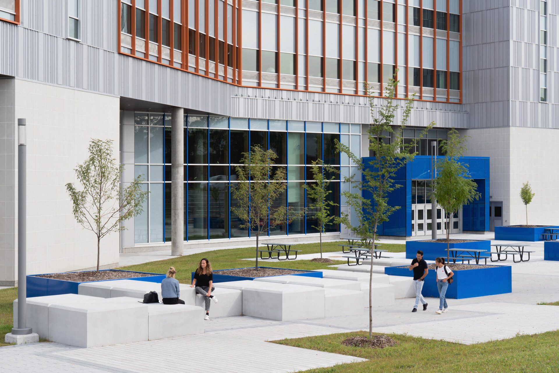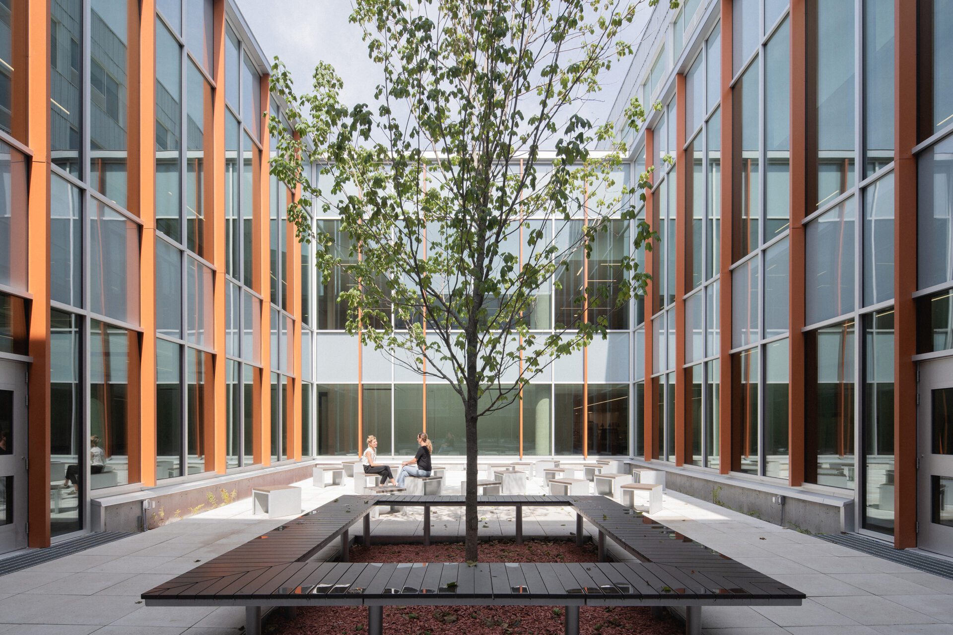A biophilic approach guides the project, integrating indigenous planting, maximizing natural daylight, enhancing water management, and encouraging active transportation. A black maple tree anchors the landscape at the heart of the school, joining a mix of preserved and newly planted species. Together with targeted wellness strategies, these features create a strong connection between users and the natural environment.