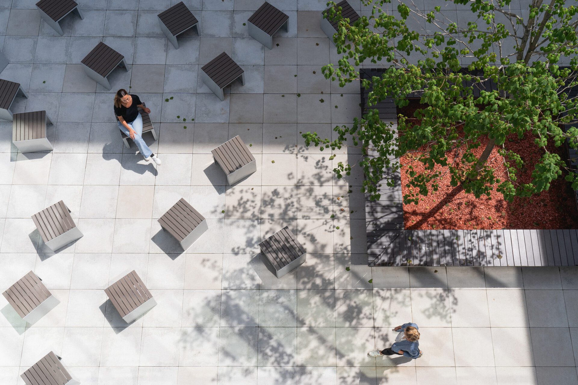 The design is fully adapted to the urban context, both in its massing and layout. Composed of two compact volumes surrounding a central courtyard and linked by two intersecting axes, the school opens onto a public square, fostering strong community connections. The site’s topography naturally supports this connection through a series of tiered, interconnected levels.