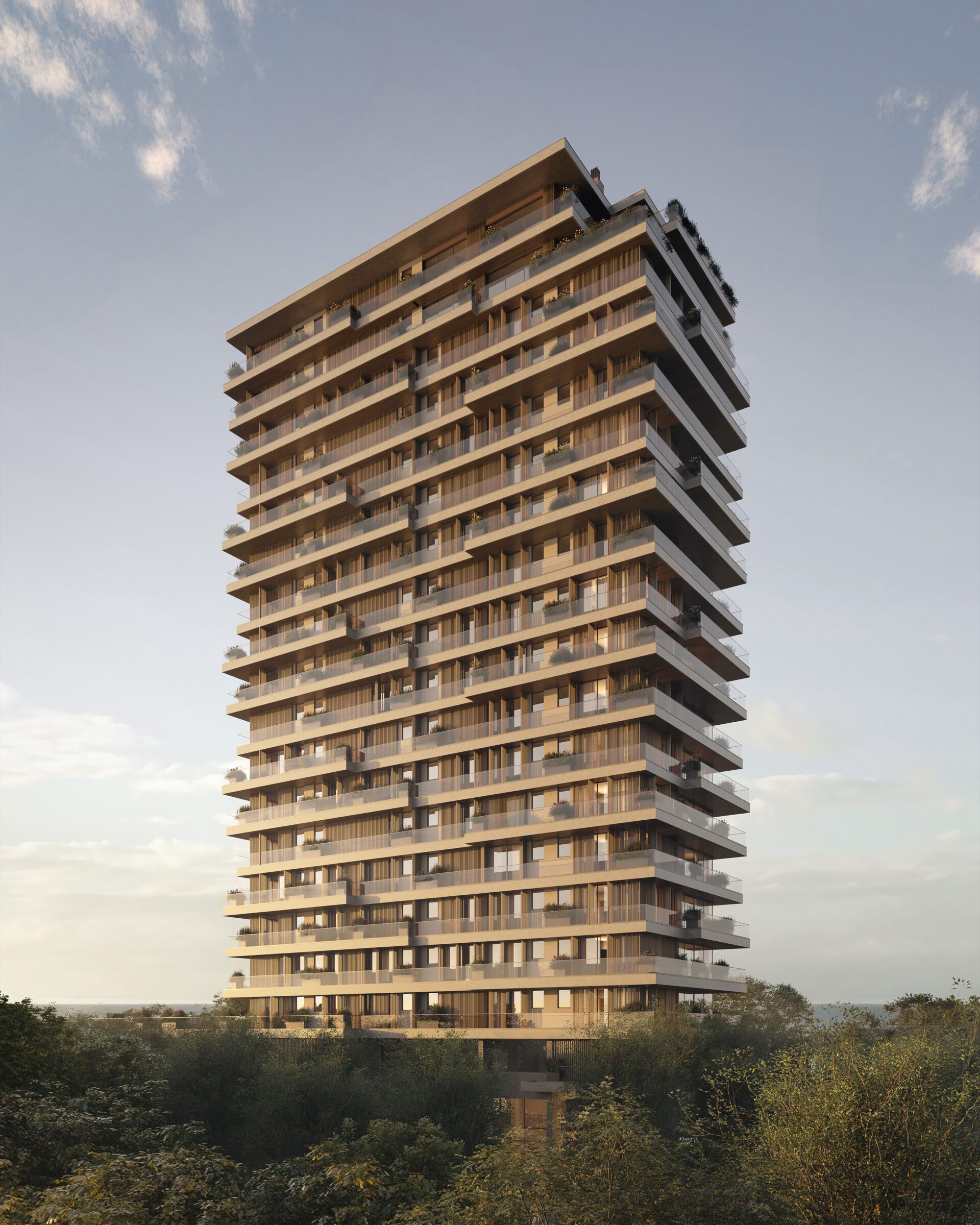On the standard floors, residential units range from 249 to 261 square meters and are strategically oriented to maximize natural lighting and ensure expansive views of the horizon. The top floors accommodate generous penthouse units, measuring 462 and 471 square meters, offering exceptional vistas and a sense of openness.