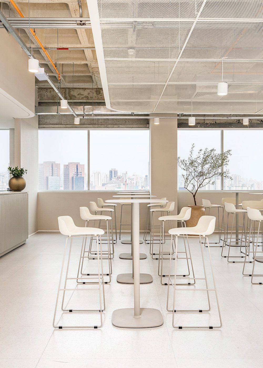 “The Moas Group invited us to build its new home, a space that goes beyond the traditional office concept by combining versatility and sophistication in environments that welcome users, whether they are part of the corporate team or Moas’ clients”, shares Carlos Andrigo, Senior Project Designer at Perkins&Will. The brand house is organized on two floors: one with a greater concentration of workstations and collaboration structures, and the other focused on social interactions, with training spaces, a cafe, meeting rooms and a showroom, the main feature of the new headquarters that offers 360° views of the city.